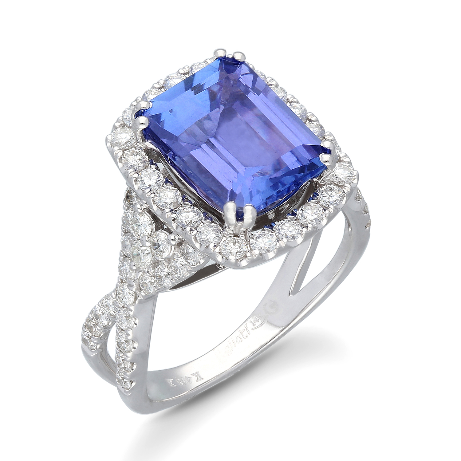 04K WHITE GOLD SQ TANZANITE DIAMOND FASH
