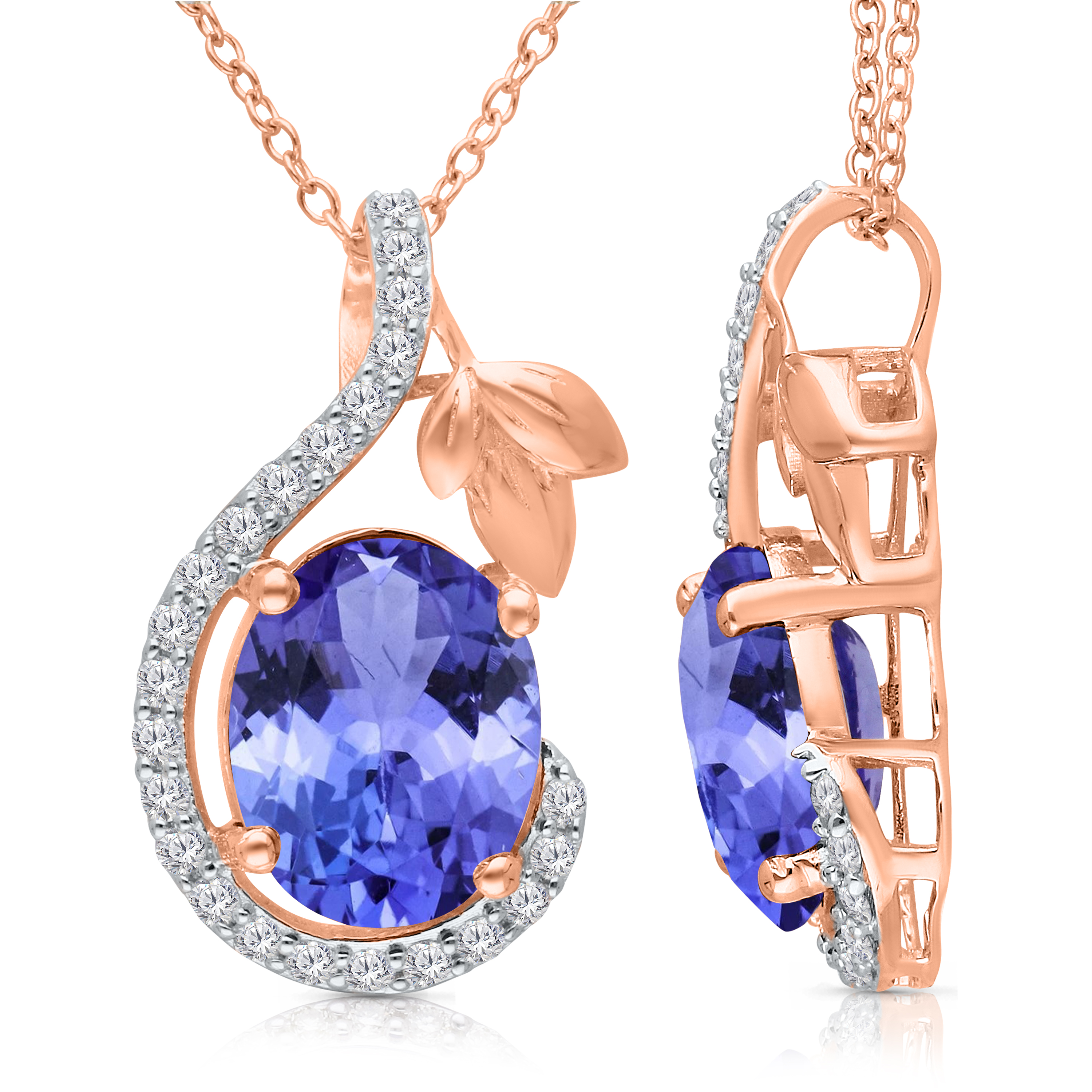 14K ROSE GOLD TANZANITE & WHITE DIAMOND FASHION PENDANT