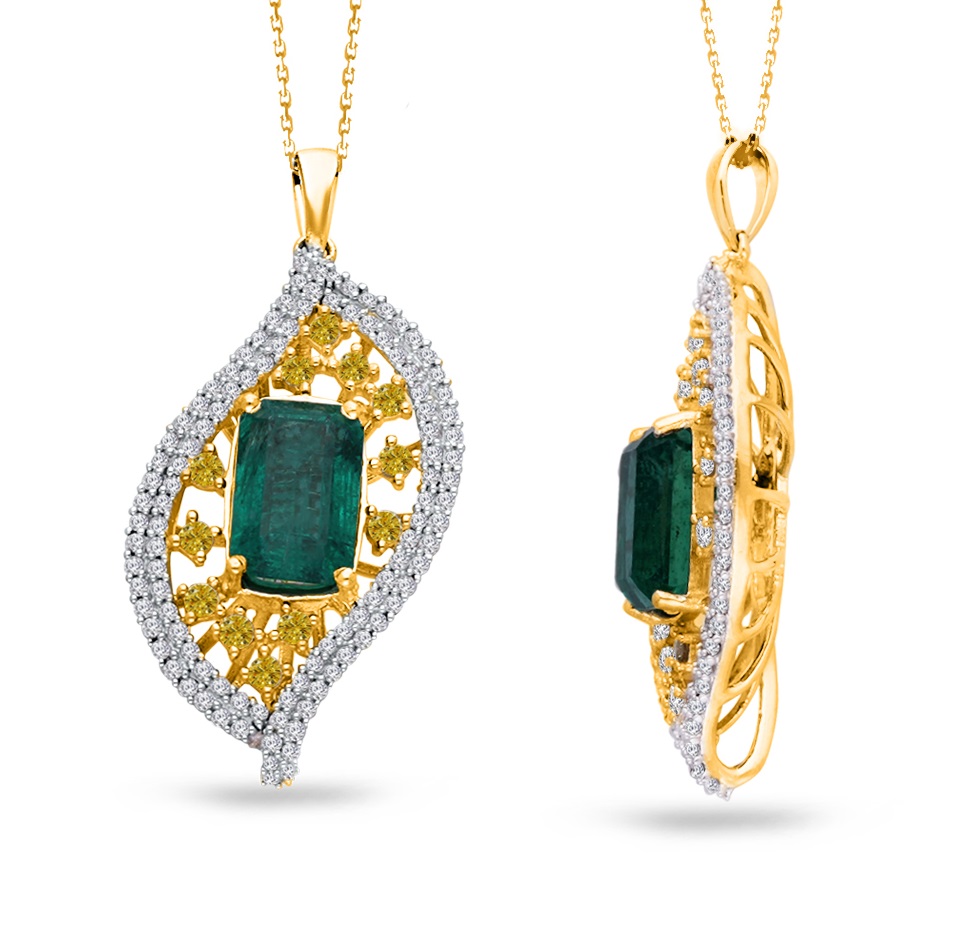 14K YELLOW GOLD ZAMBIAN EMERALD & YELLOW
