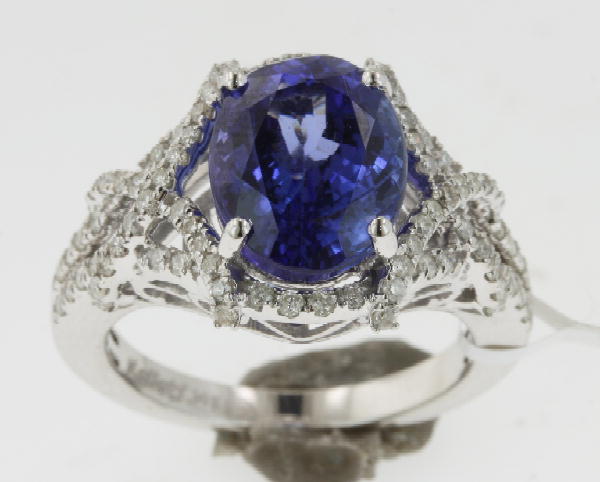 14K WHITE GOLD TANZANITE & WHITE DIAMOND
