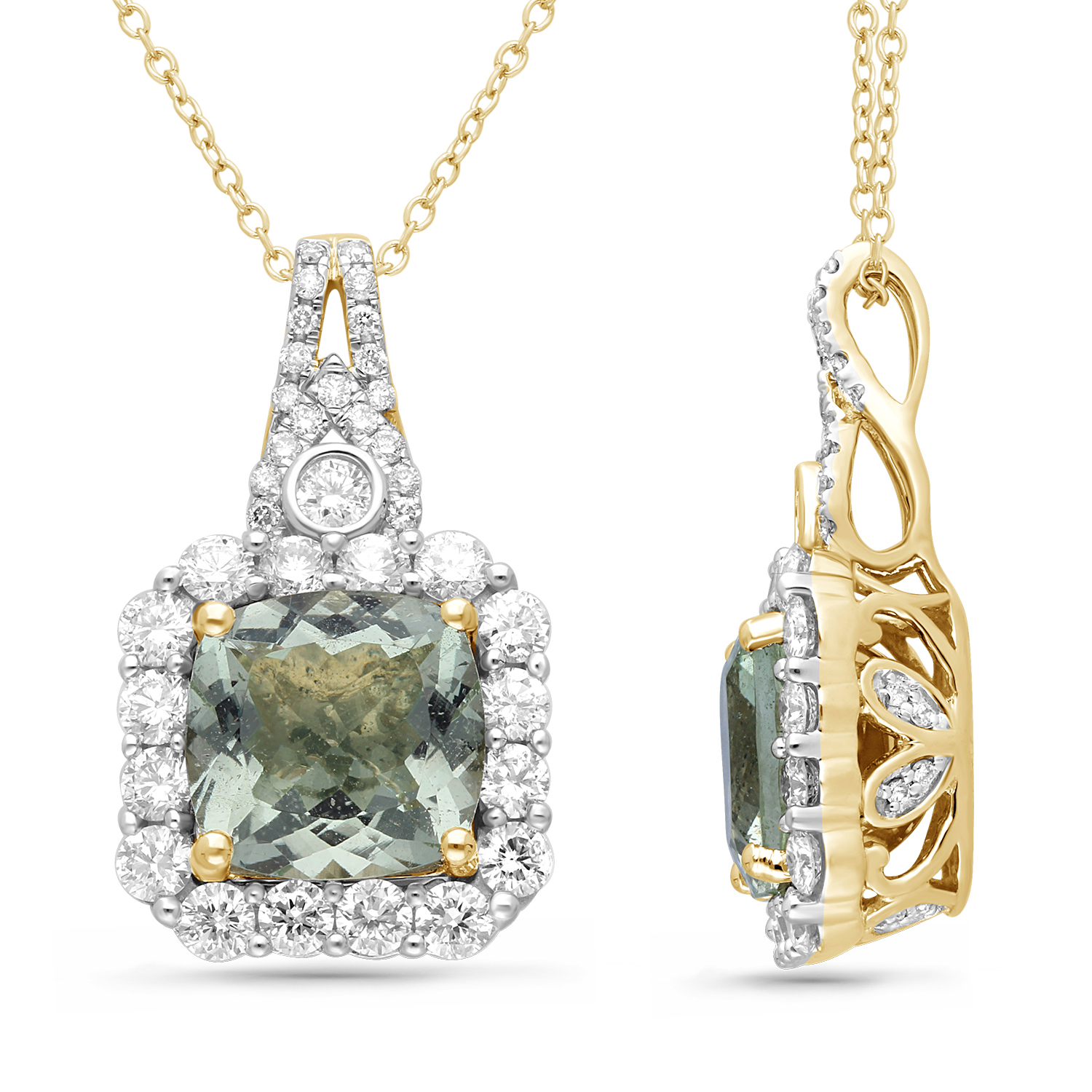 14K YELLOW GOLD GREEN AQUA MARINE & WHIT