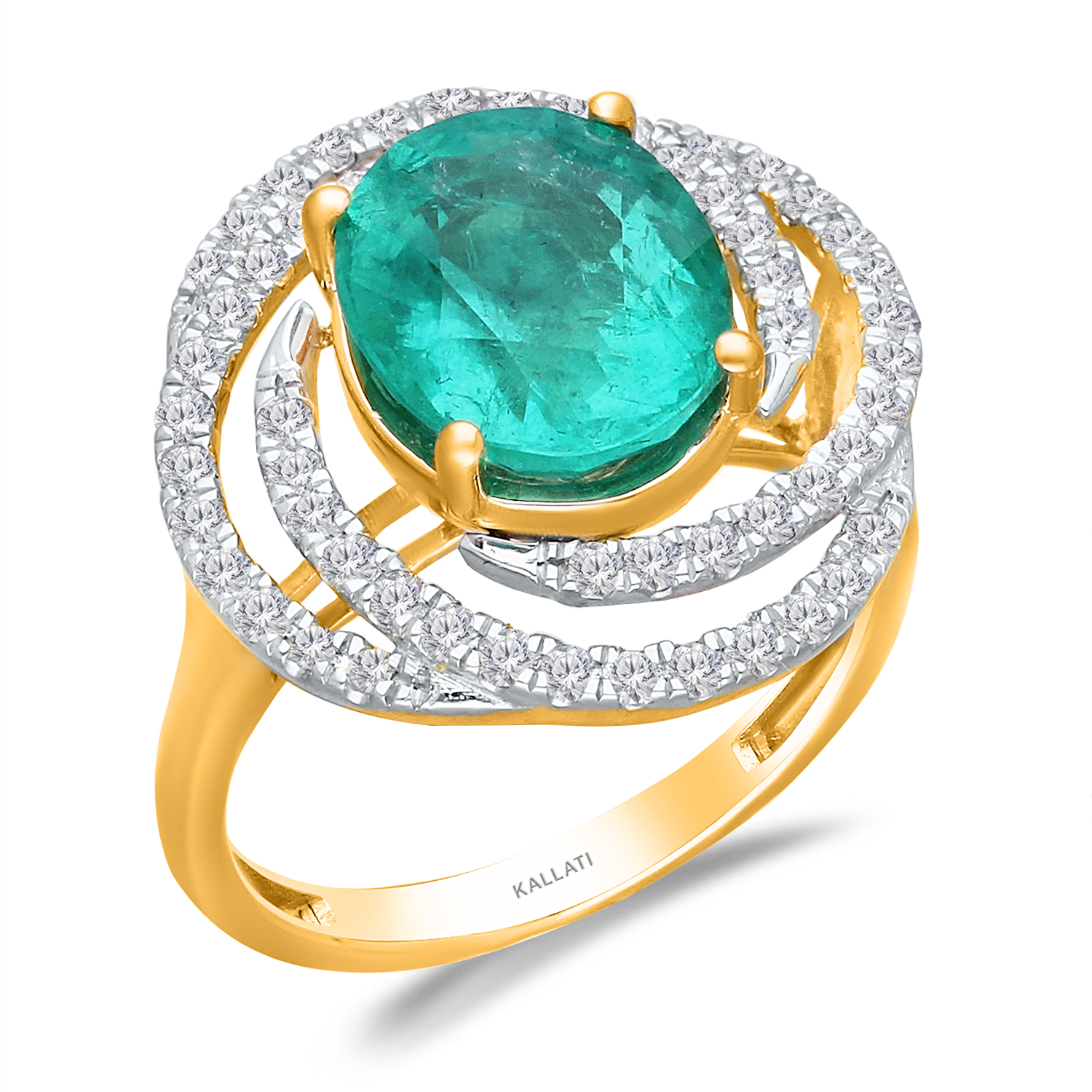 14K YELLOW GOLD ZAMBIAN EMERALD & WHITE