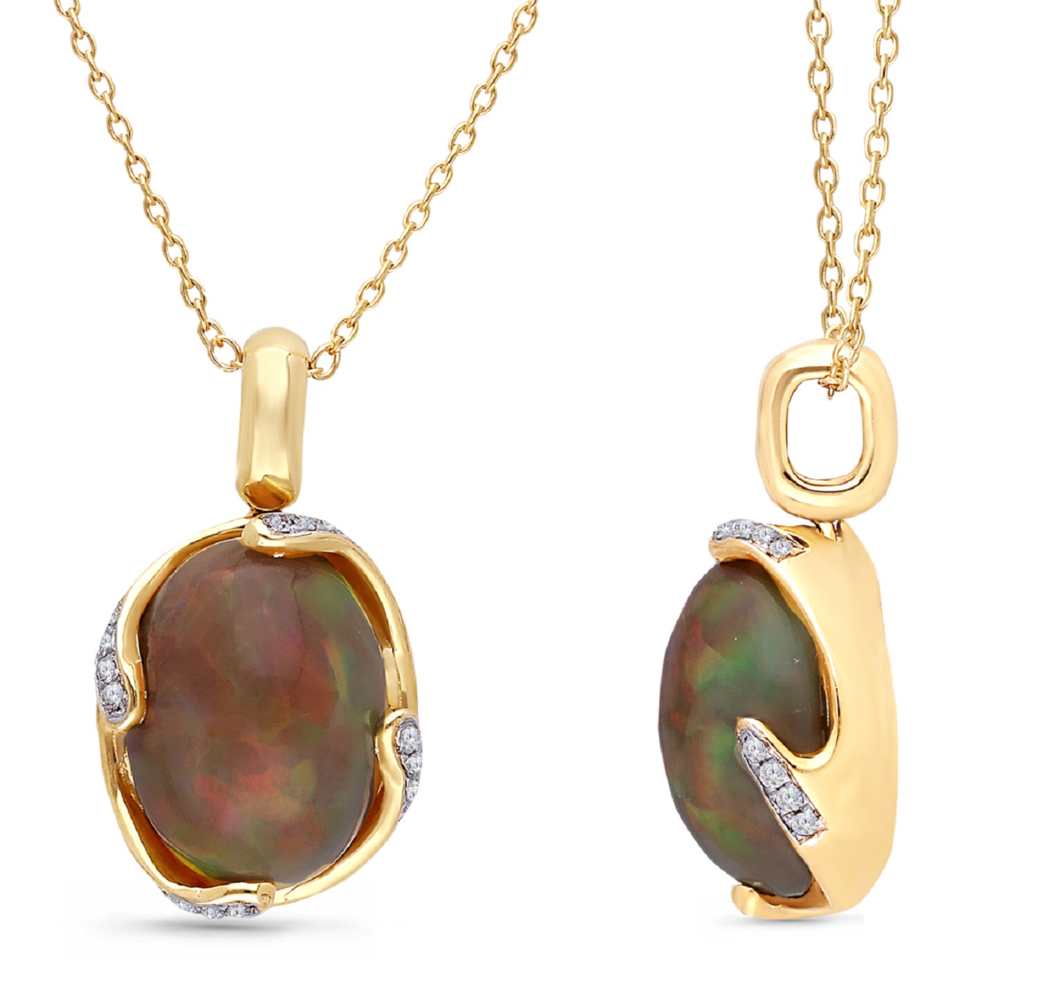 14K YELLOW GOLD WITH OPAL & DIAM PENDANT