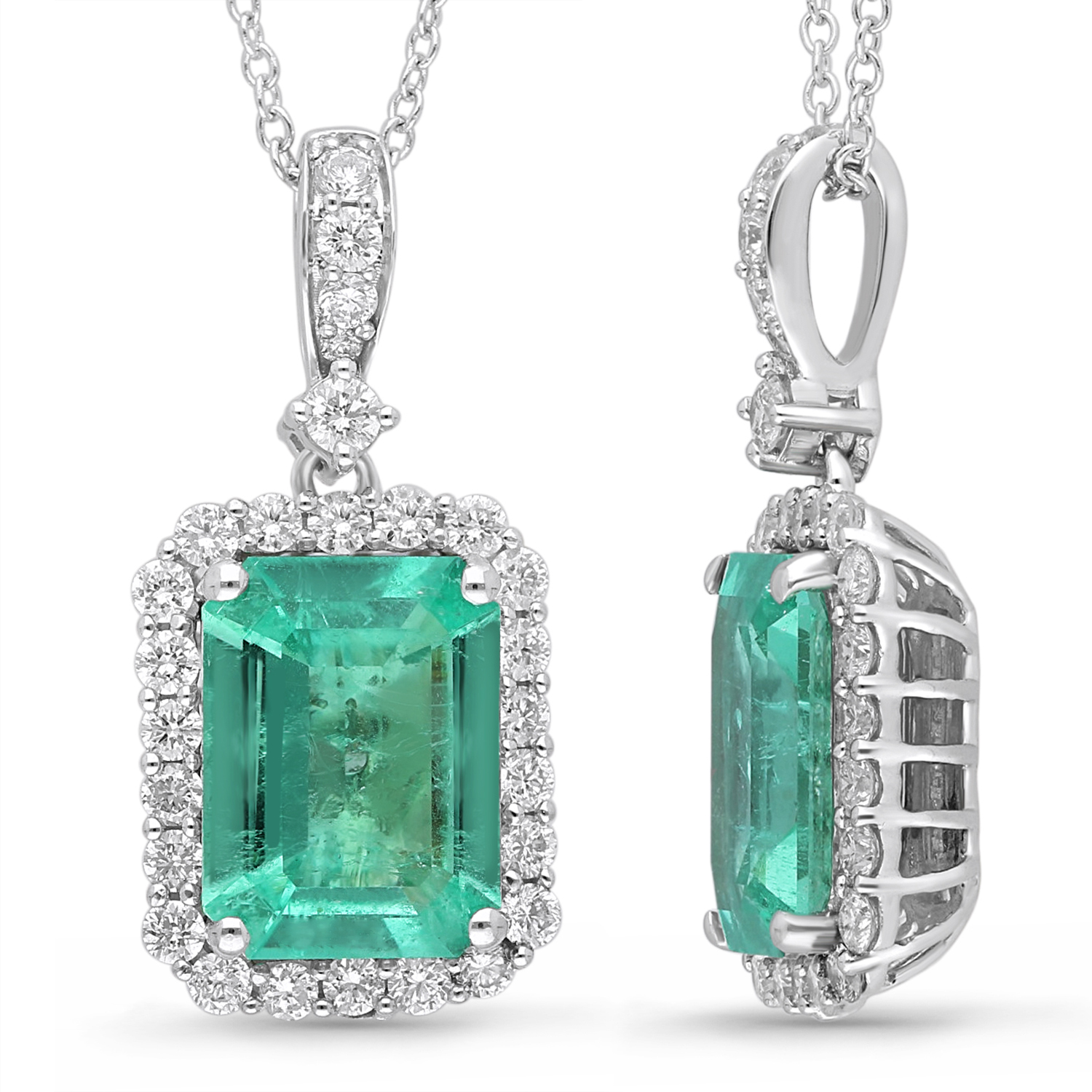 14K WHITE GOLD ZAMBIAN EMERALD DIA RING