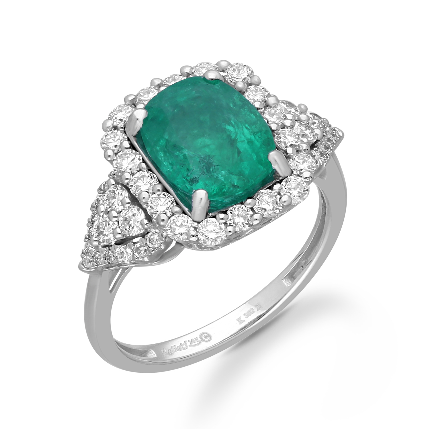 14K WHITE GOLD ZAMBIA EMERALD & WHITE DI