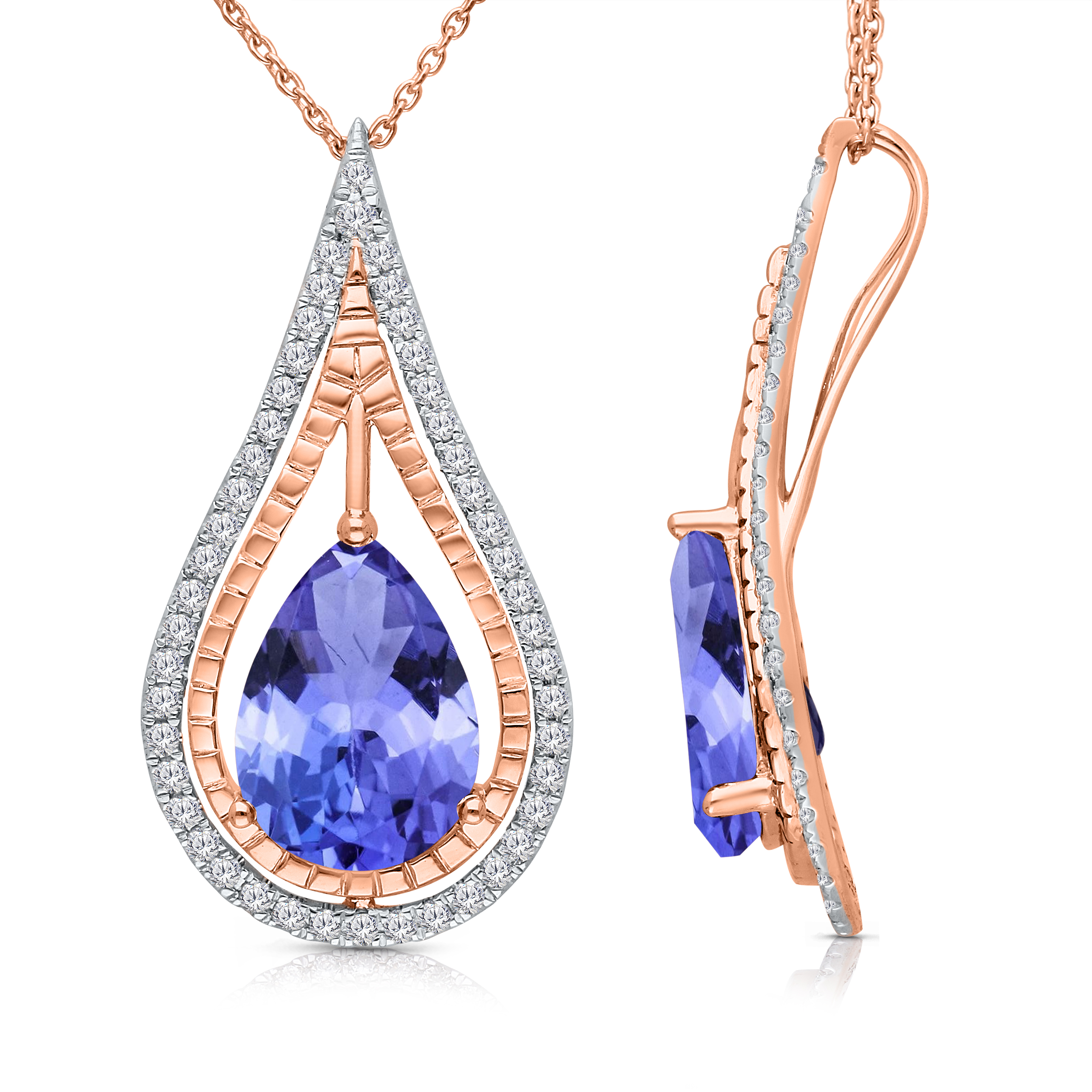 14K ROSE GOLD TANZANITE & WHITE DIAMOND FASHION PENDANT