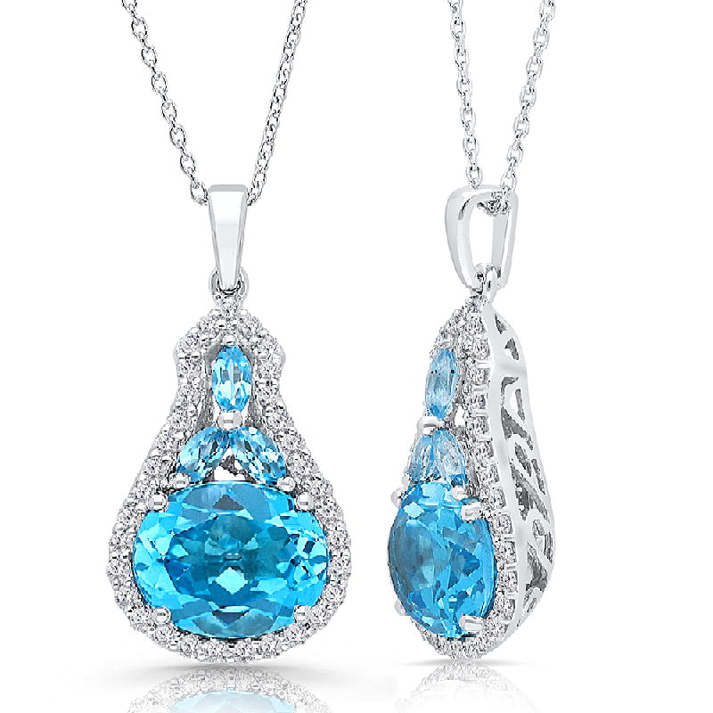 14K WHITE GOLD BLUE TOPAZ & DIA PENDANT
