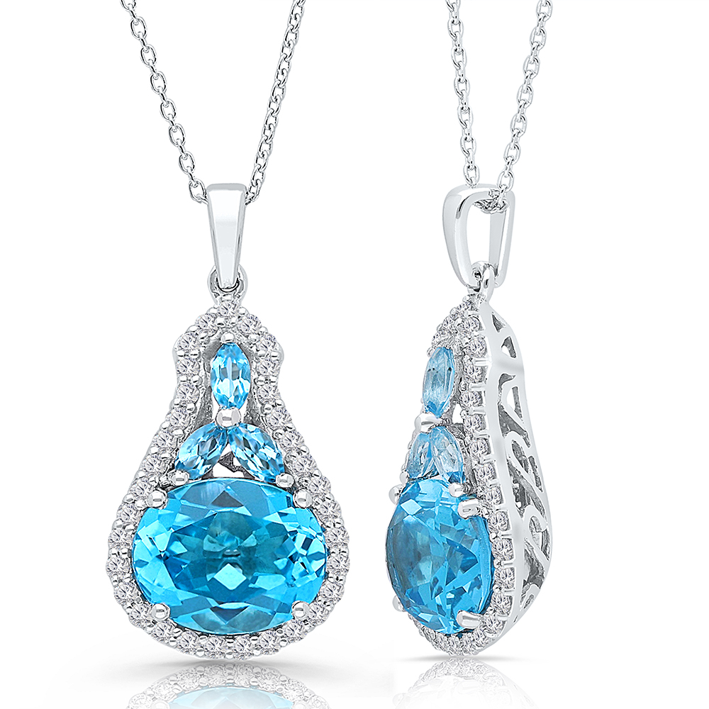 14K YELLO GOLD BLUE TOPAZ & DIA PENDANT