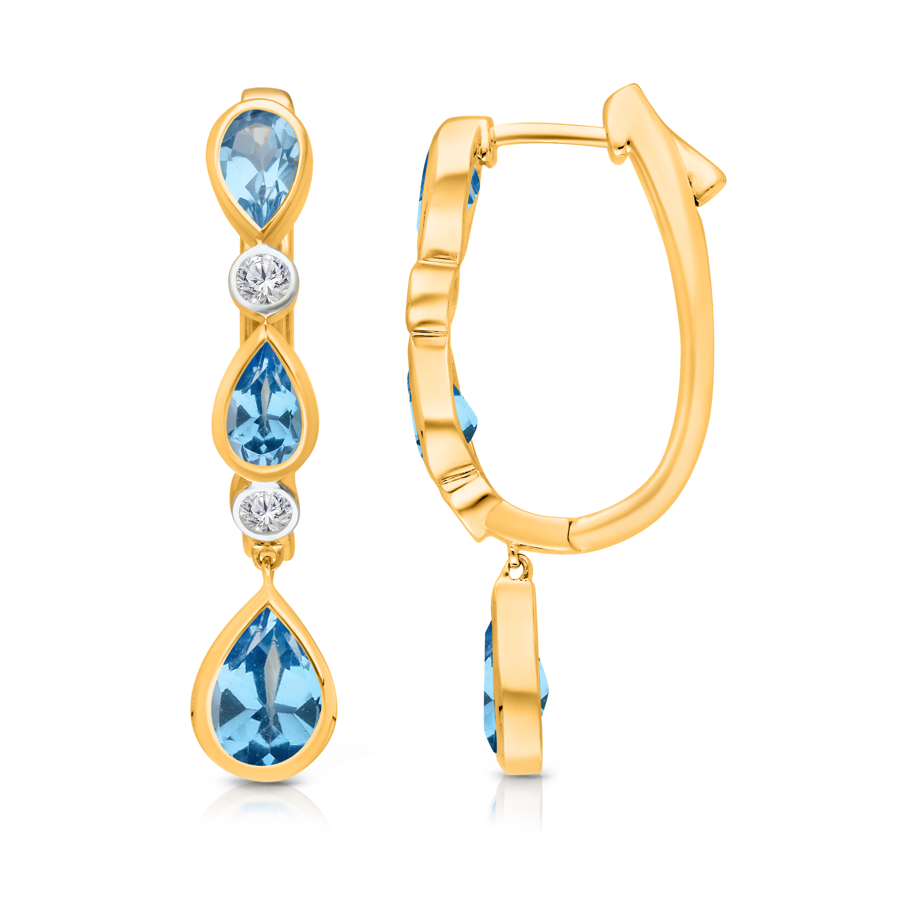 14K YELLOW GOLD BLUE TOPAZ & WHITE DIAMOND FASHION EARRING