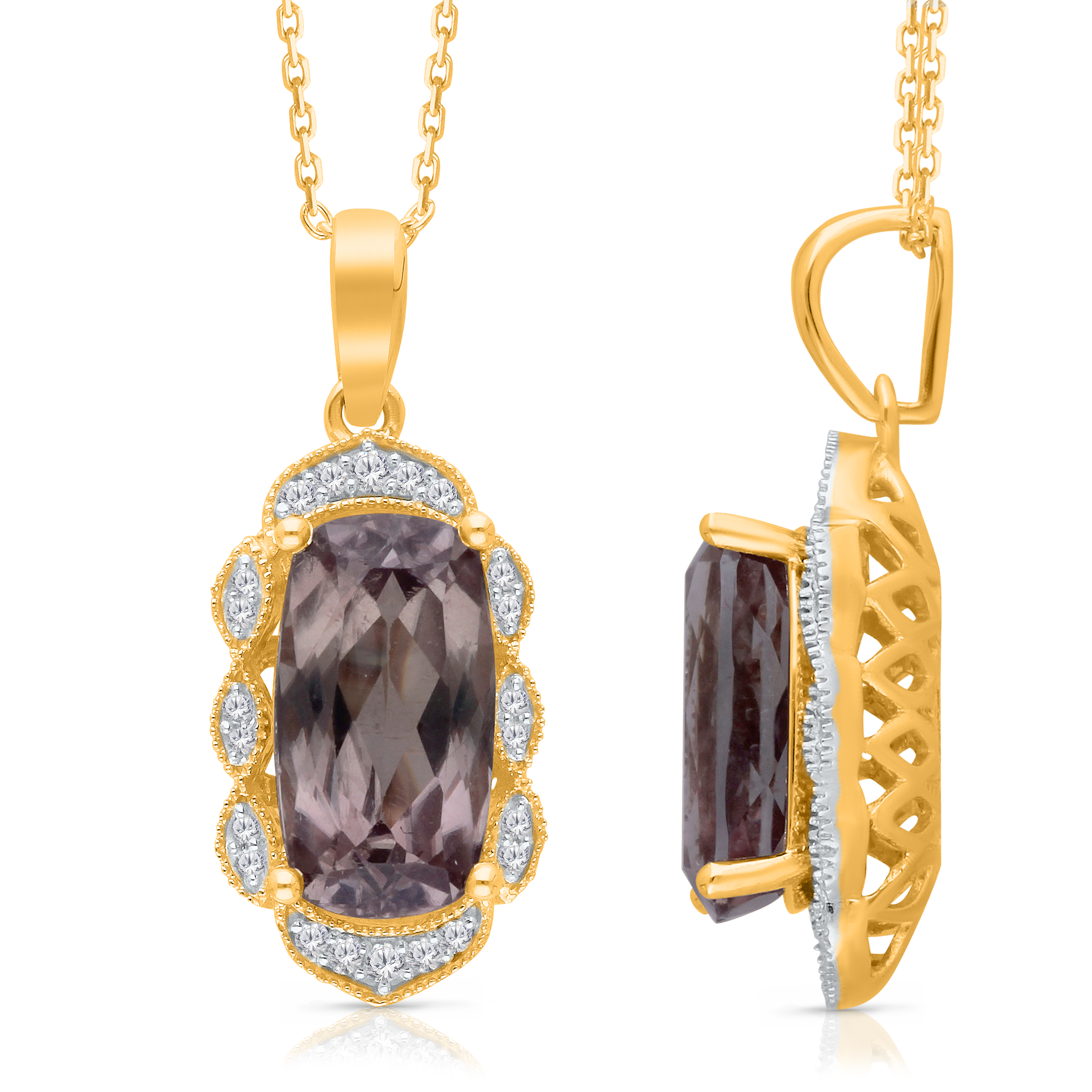 14 K YELLOW GOLD CSARITE WITH WHITE DIAMOND FASHION PENDANT