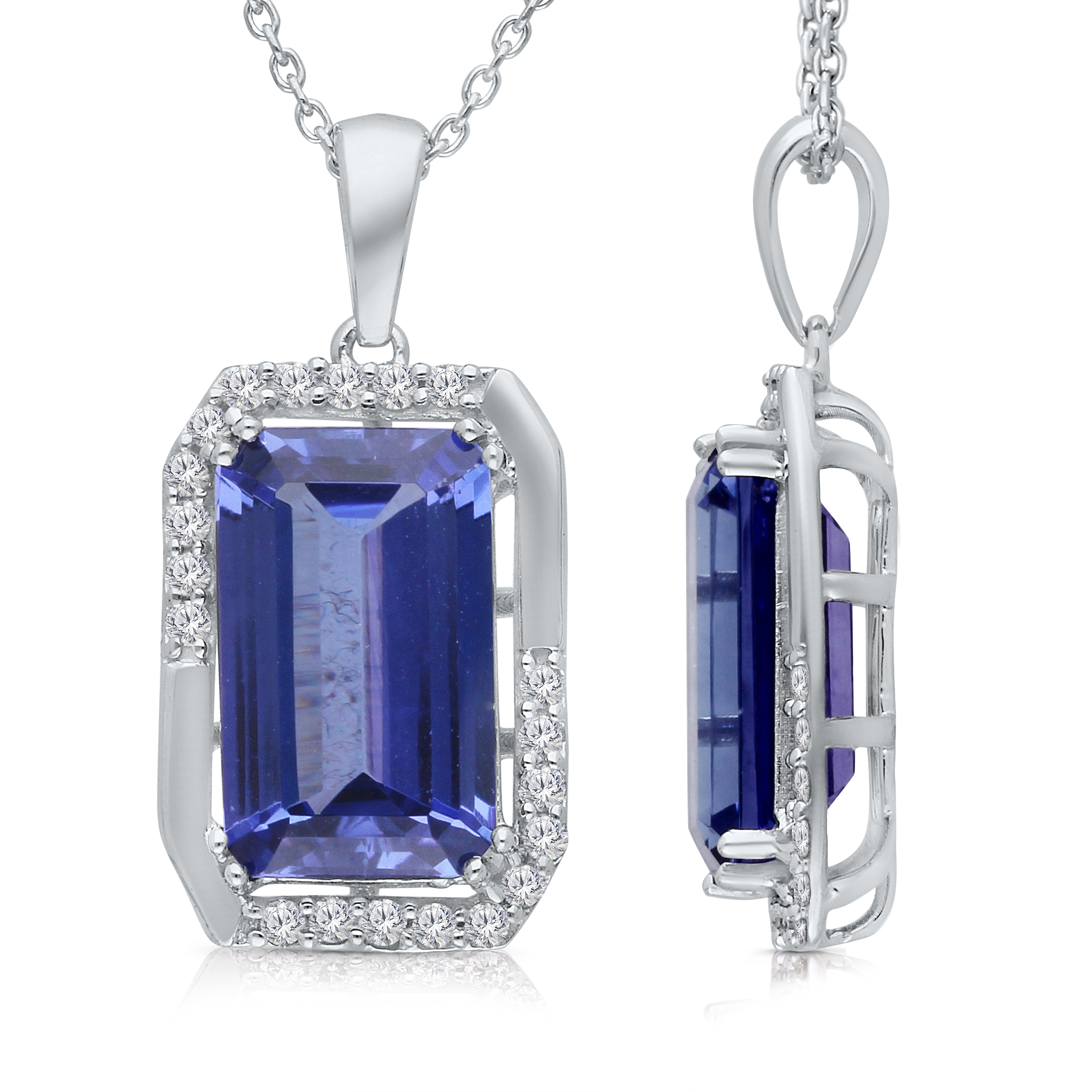 14K WHITE GOLD TANZANITE WITH WHITE DIAMOND FASHION PENDANT
