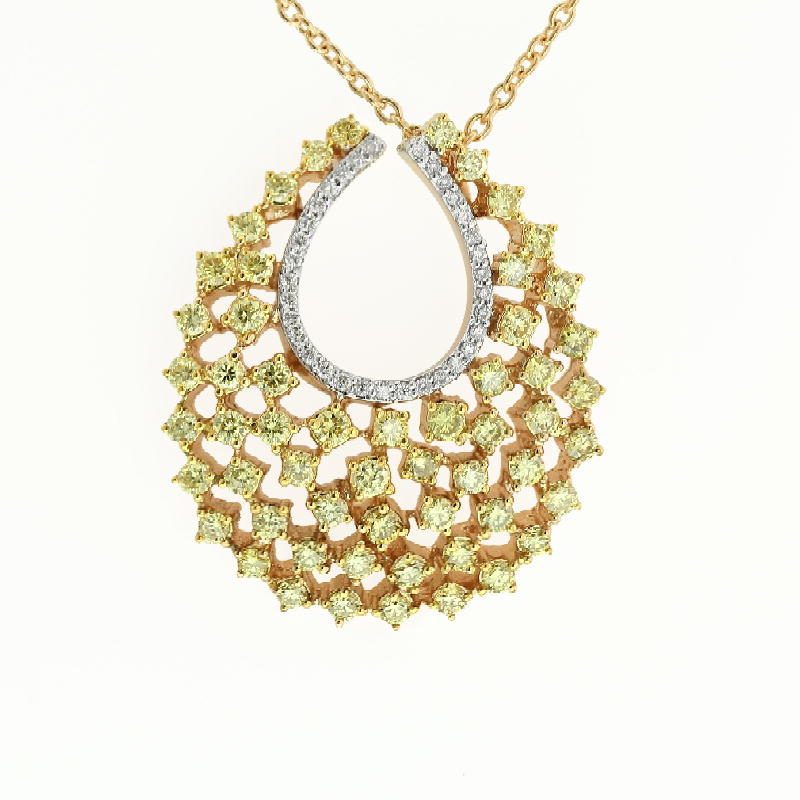 14K YELLOW GOLD MULTI SAPPHIRE & WHITE DIAMOND FASHION PENDANT