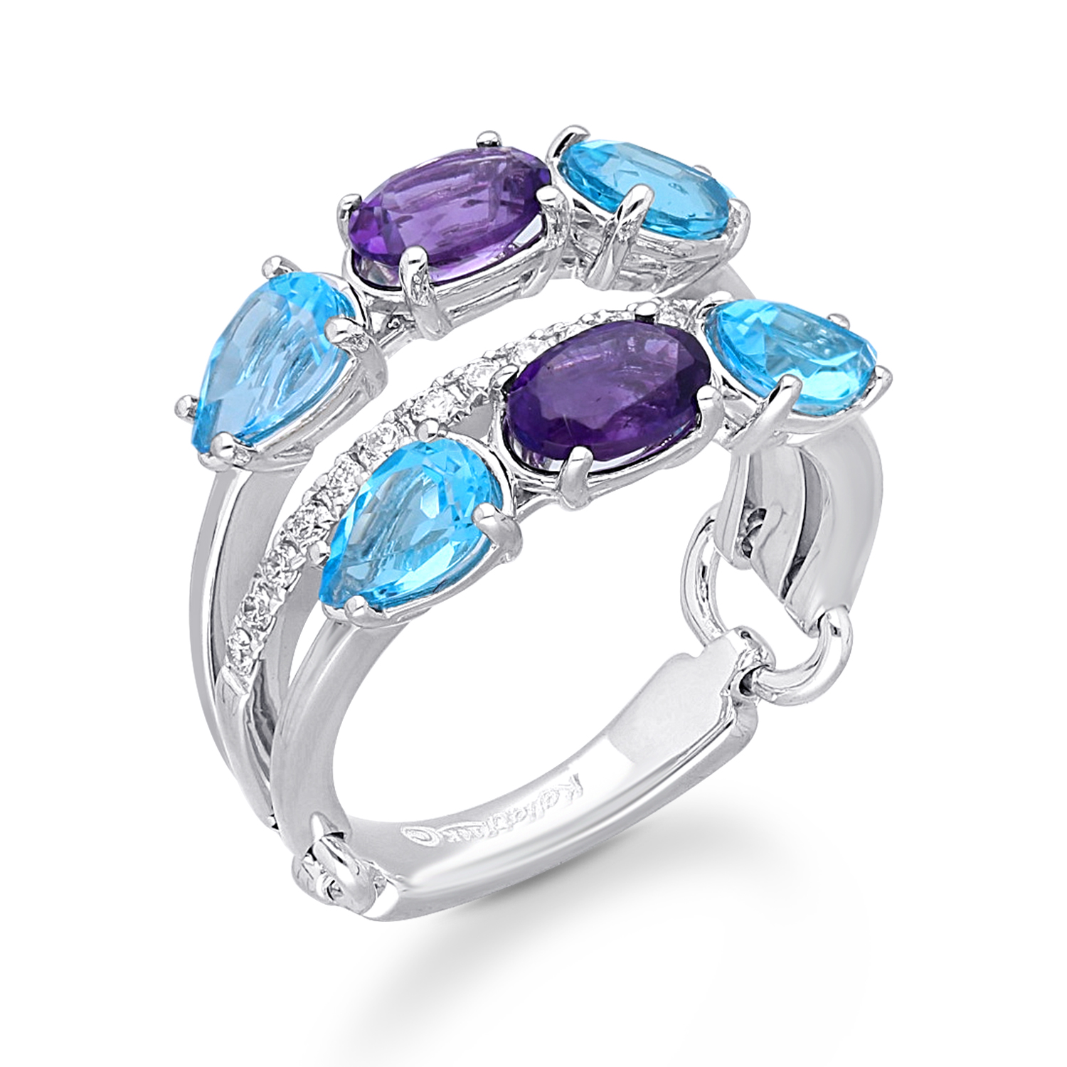 14K WHITE GOLD BLUE TOPAZ & AMETHIES DIA