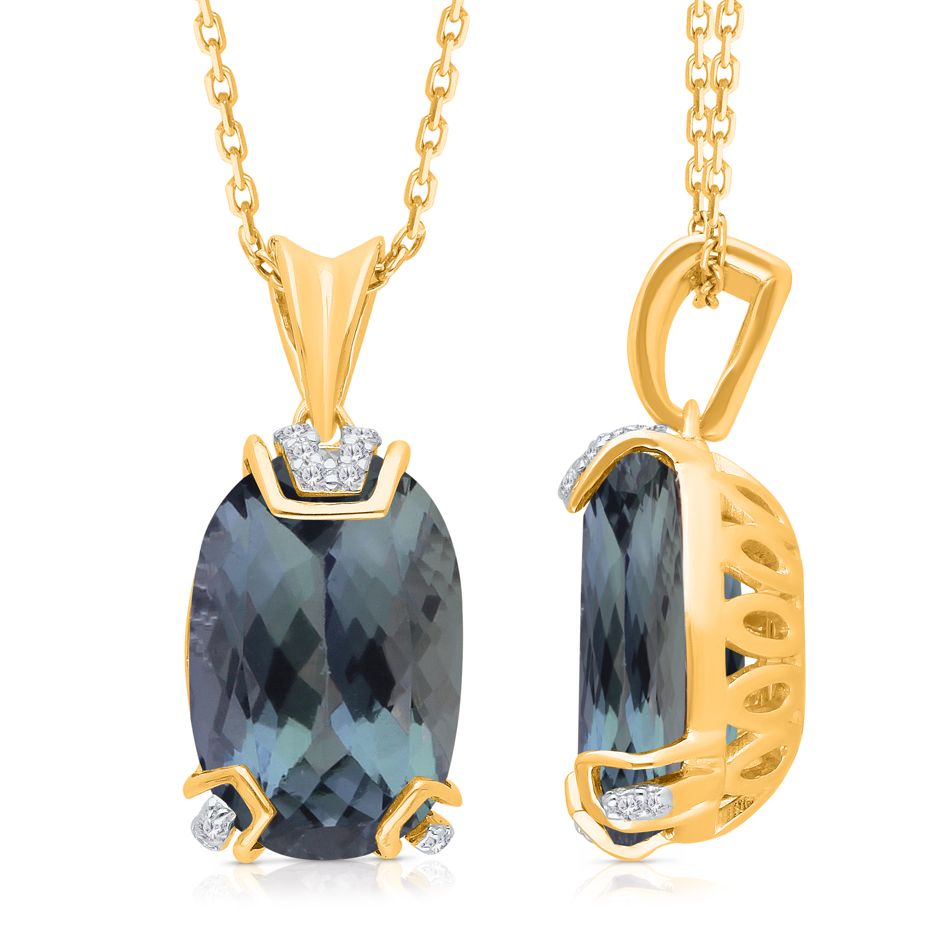 14K YELLOW GOLD NON HEAT TANZANITE & WHITE DIAMOND FASHION PENDANT