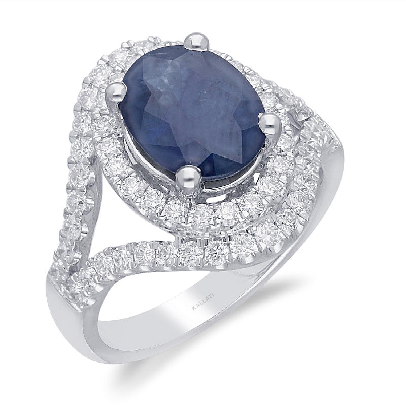 14K WHITE GOLD SAPPHIRE WITH WHITE DIAMOND FASHION RING