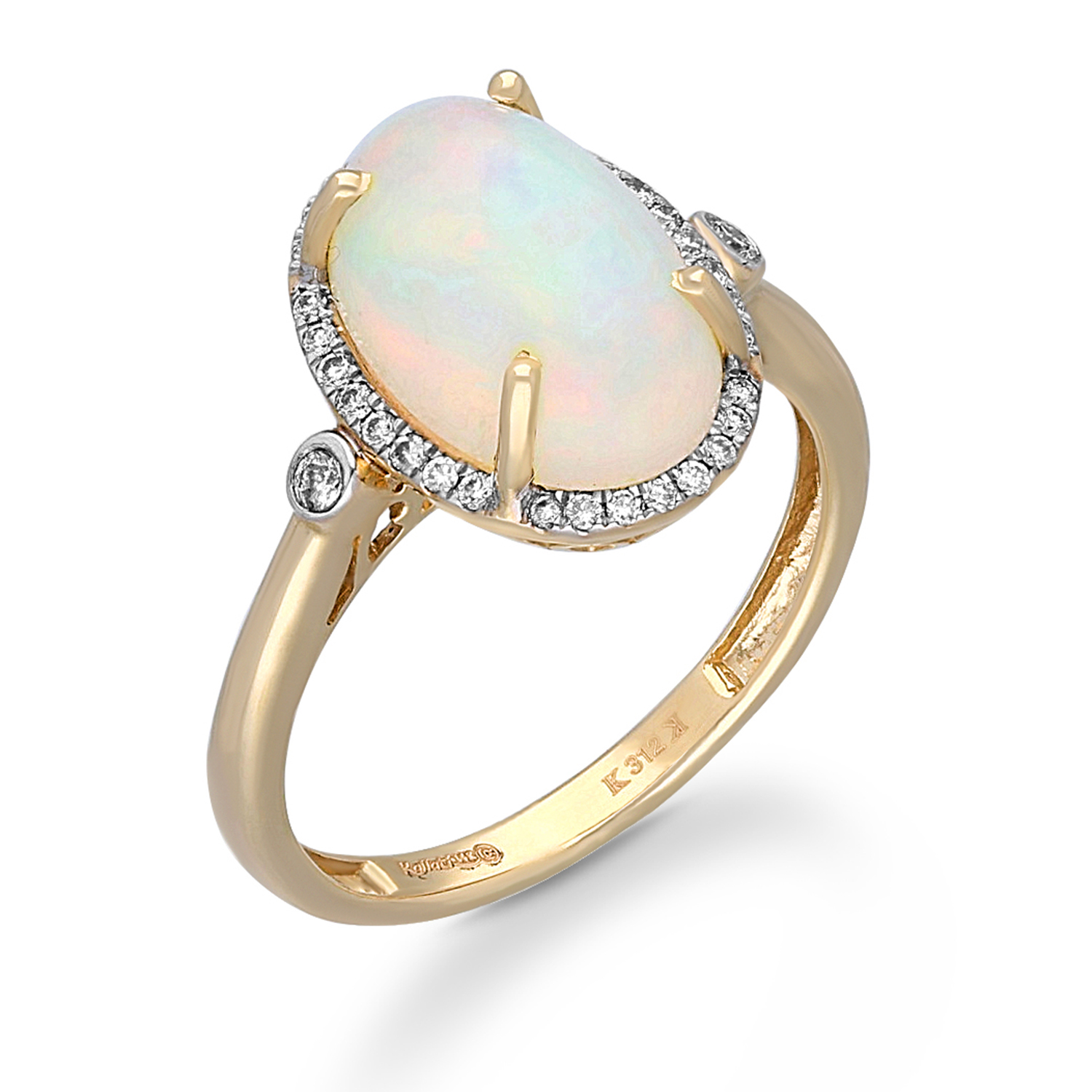 14K YELLOW GOLD WITH OPAL & DIAMOND FASHION RING
