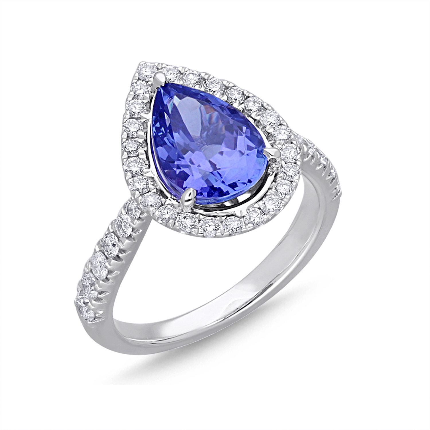 WHITE GOLD TANZANITE WHITE DIAMOND RING