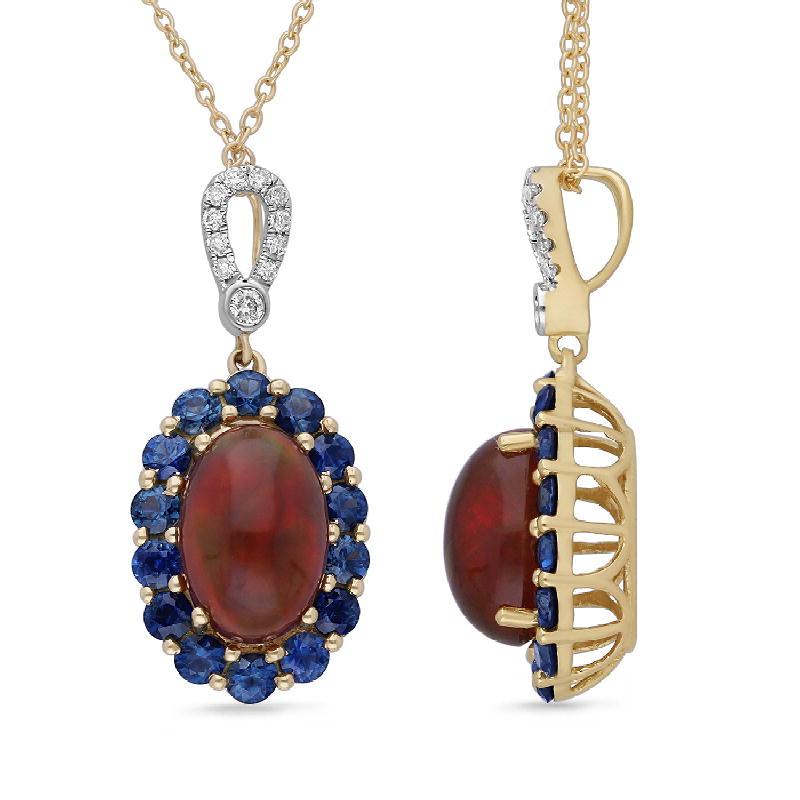 14K YELLOW GOLD SAPP & OPAL DIAMOND PEND