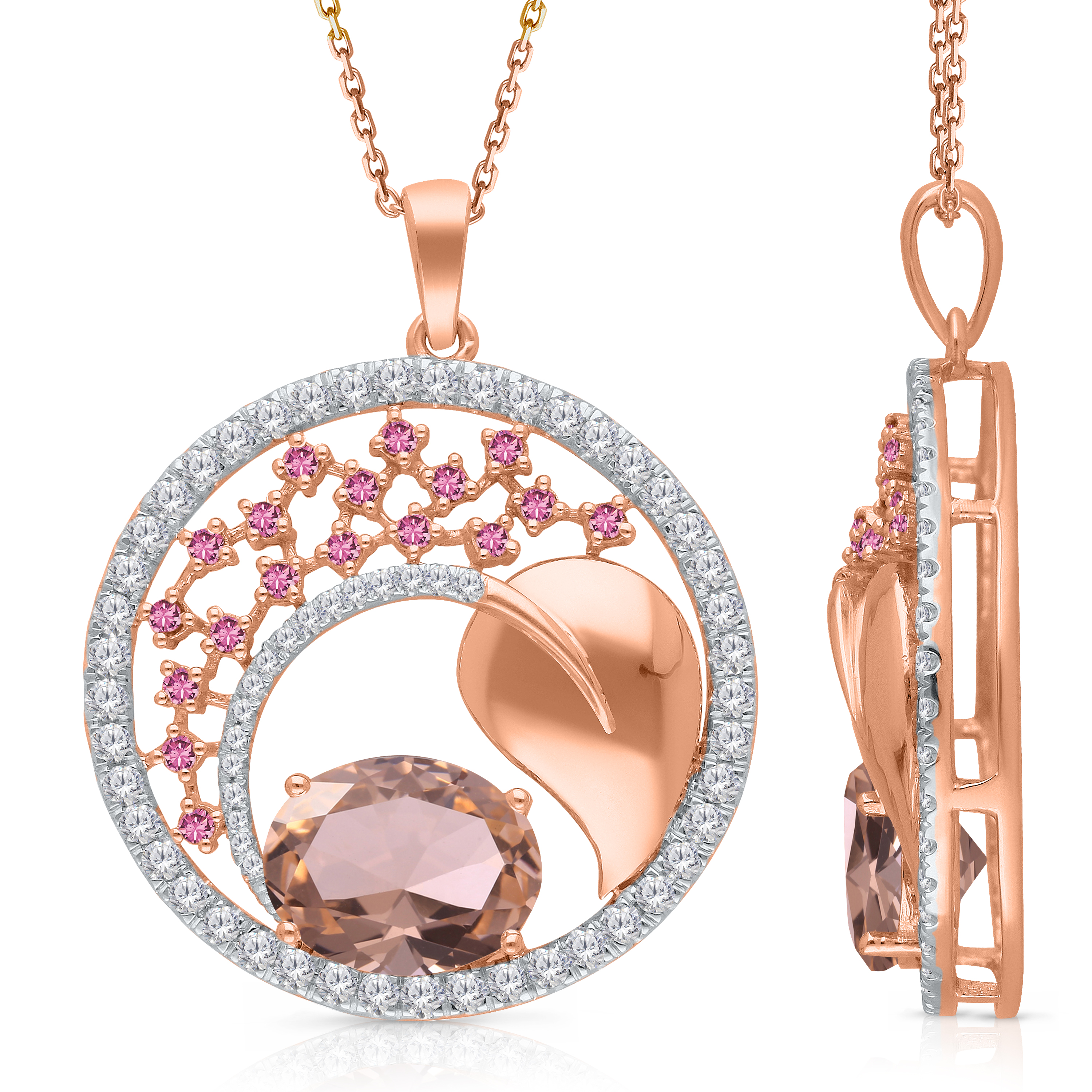 14 K ROSE GOLD MORGANITE & PINK SAPPHIRE WITH WHITE DIAMOND