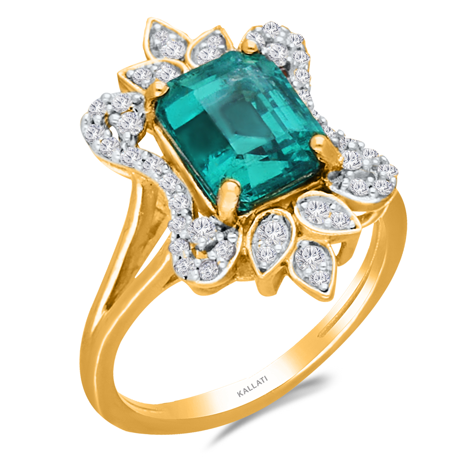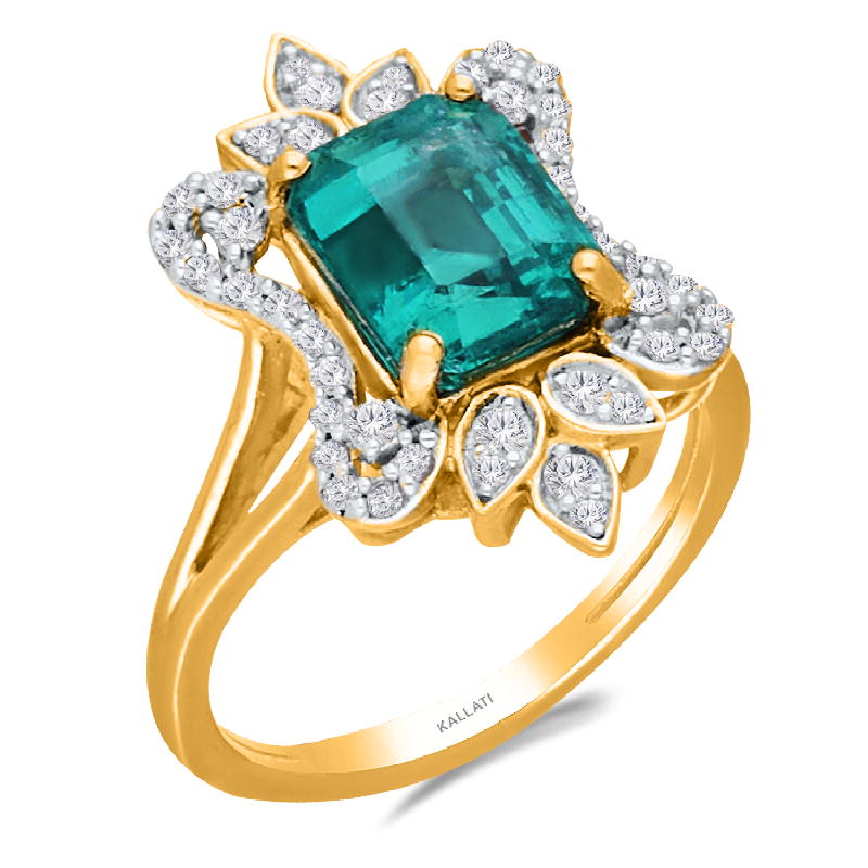 14K YELLOW GOLD ZAMBIAN EMERALD & WHITE