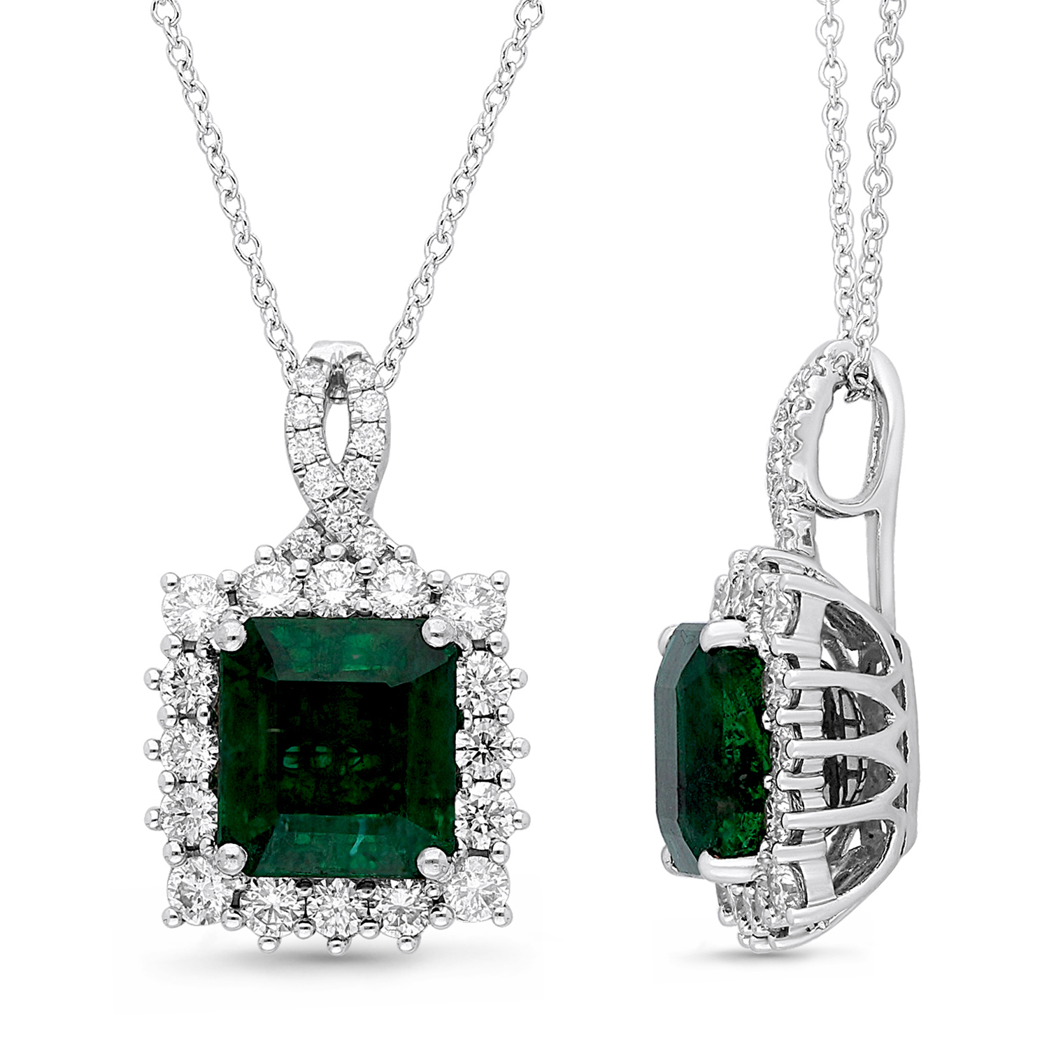 14K WHITE GOLD ZAMBIAN EMERALD DIAMOND F