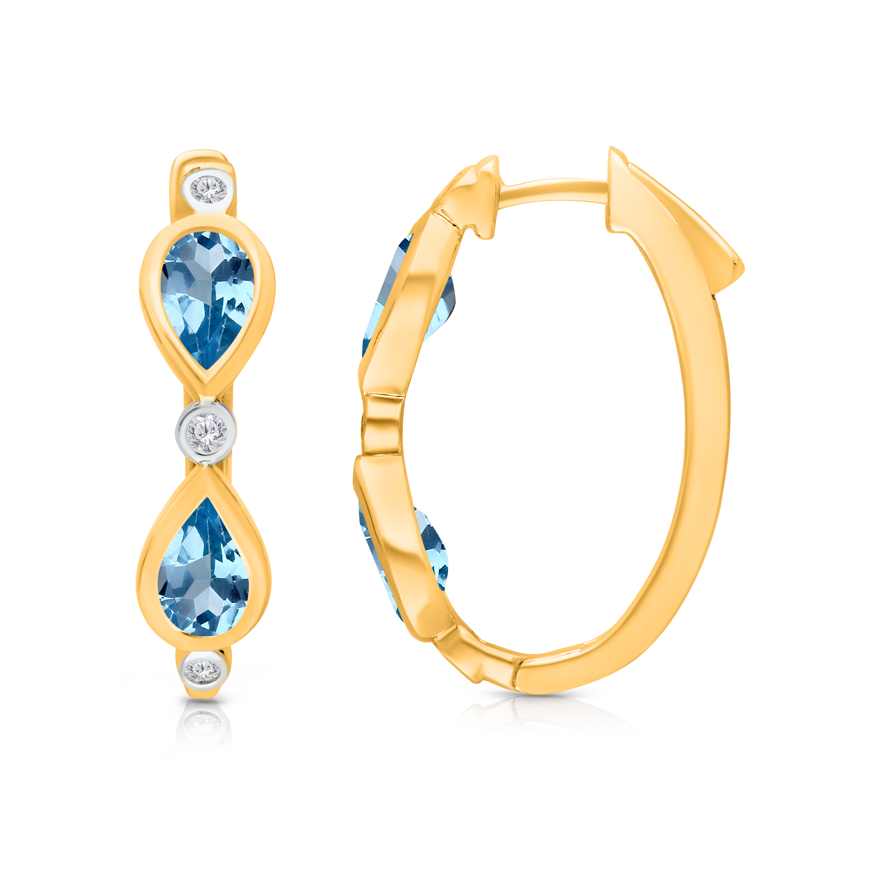 14K YELLOW GOLD BLUE TOPAZ & WHITE DIAMOND HOOP EARRING