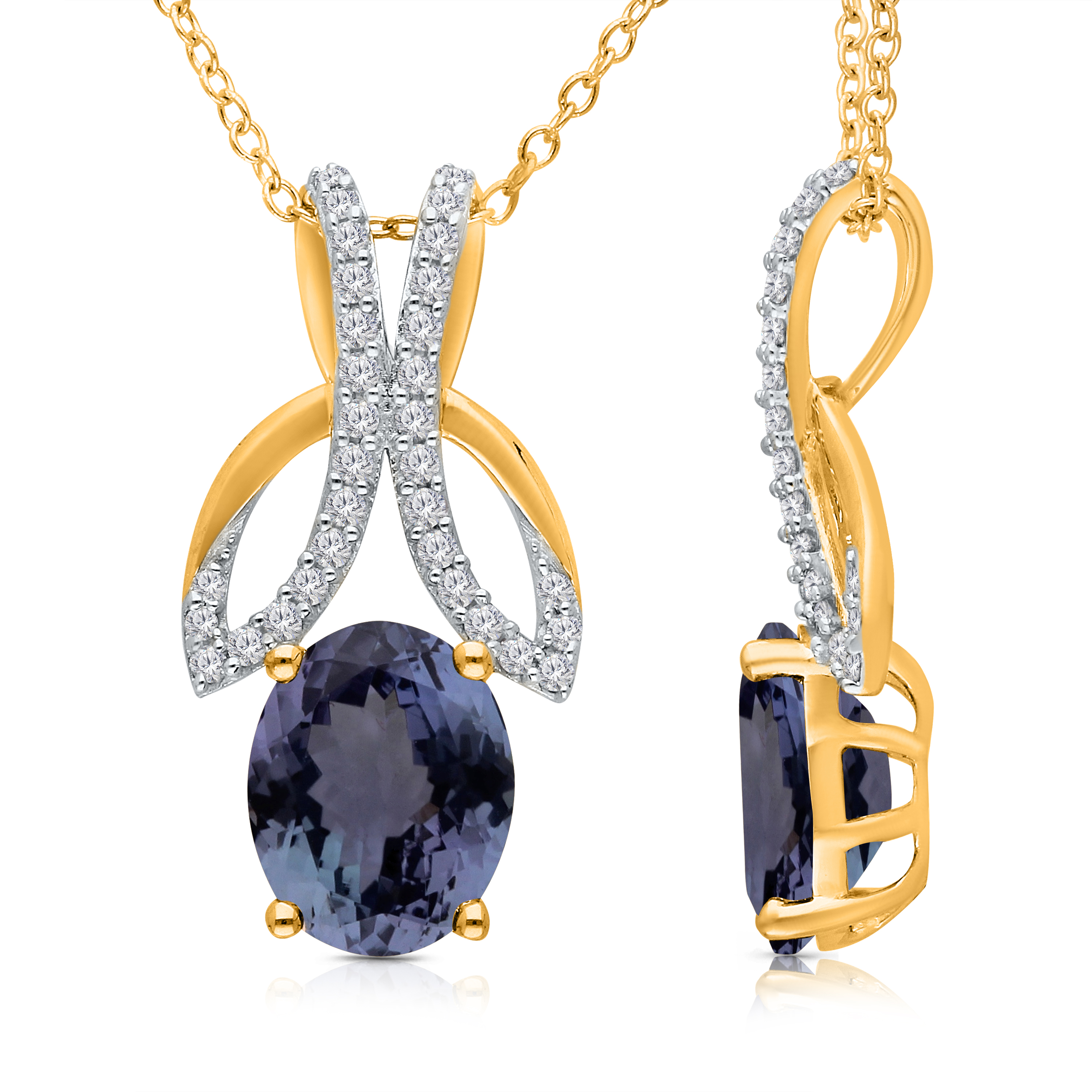 14K YELLOW GOLD NON HEAT TANZANITE WITH WHITE DIAMOND FASHION PENDANT