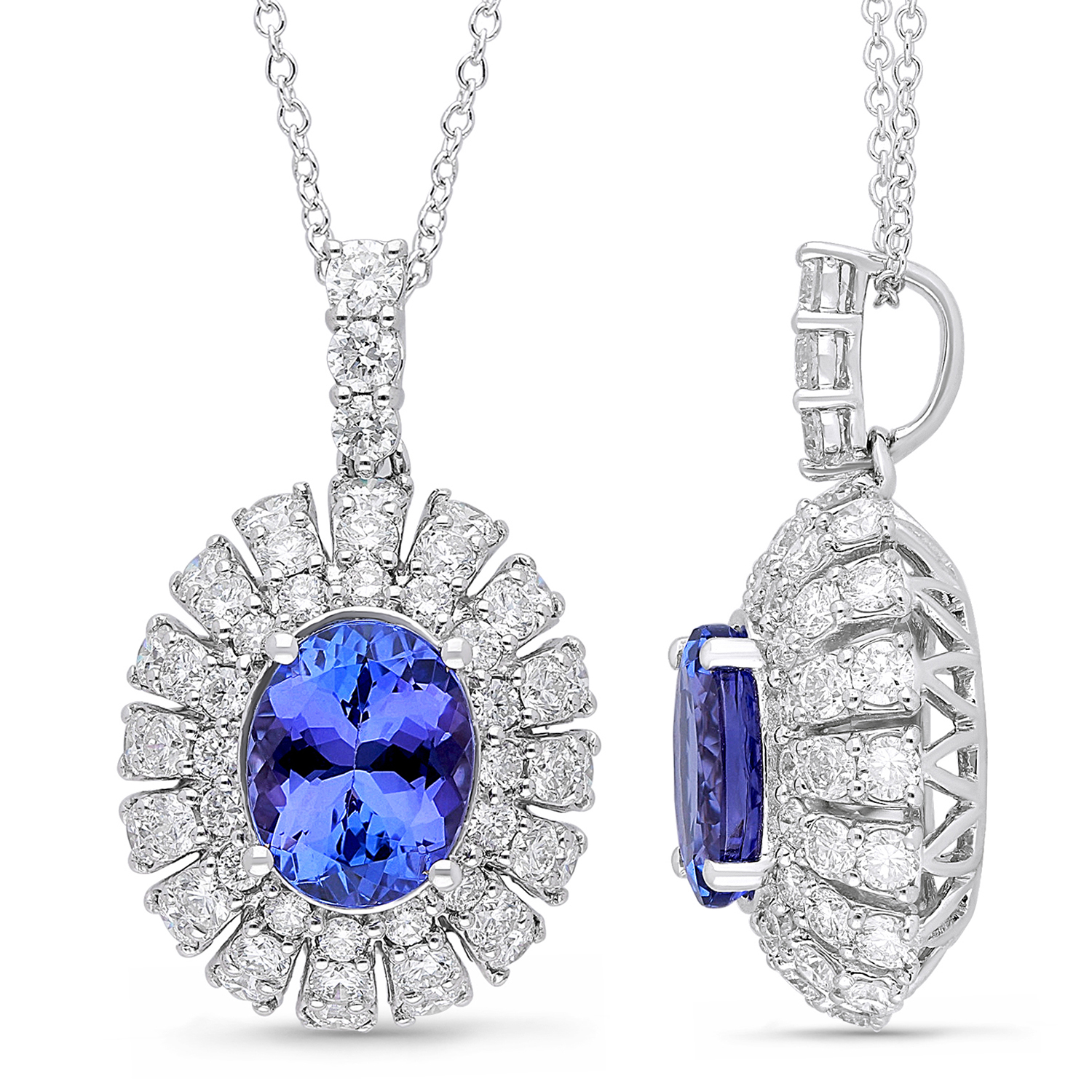 14K WHITE GOLD SI TANZANITE DIAMOND PEND