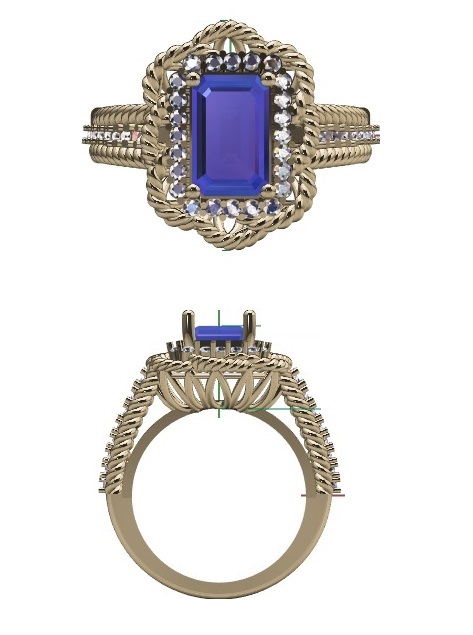 14K YELLOW GOLD NON-HEAT TANZANITE WITH WHITE DIAMOND FASHION RING