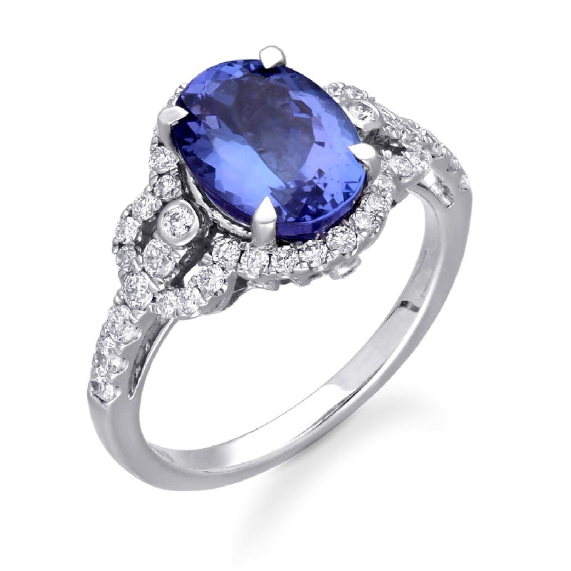 14K WHITE GOLD OVAL TANZANITE WHITE DIA
