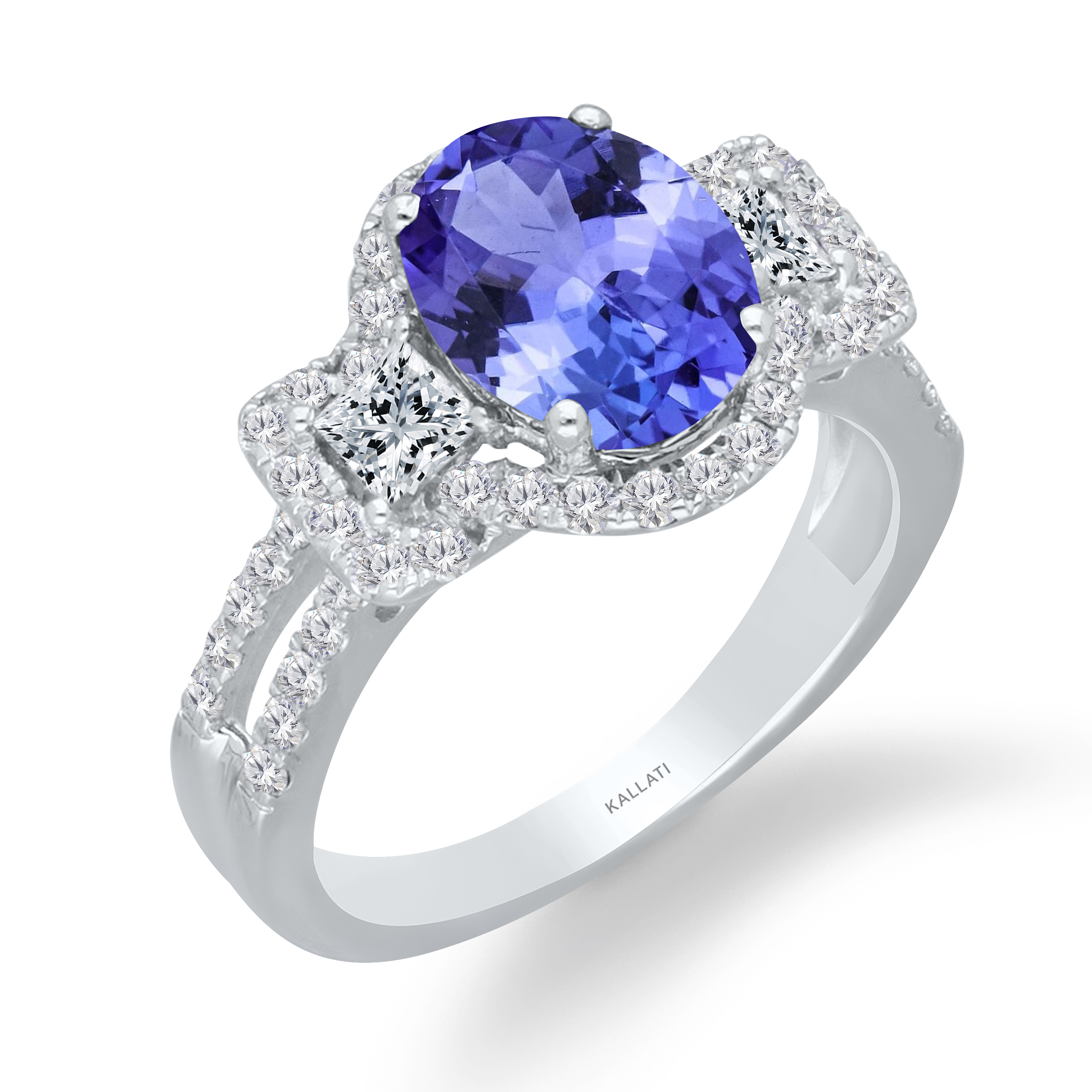 WHITE GOLD TANZANITE WHITE DIAMOND RING