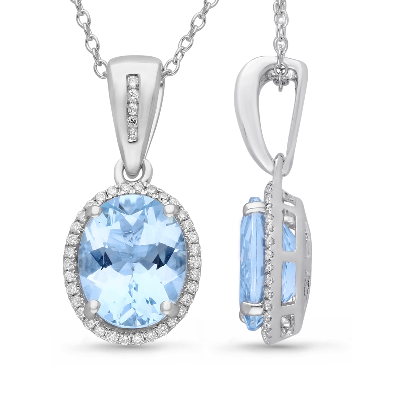 14K WHITE GOLD AQUA MARINE & WHITE DIAMOND FASHION PENDANT