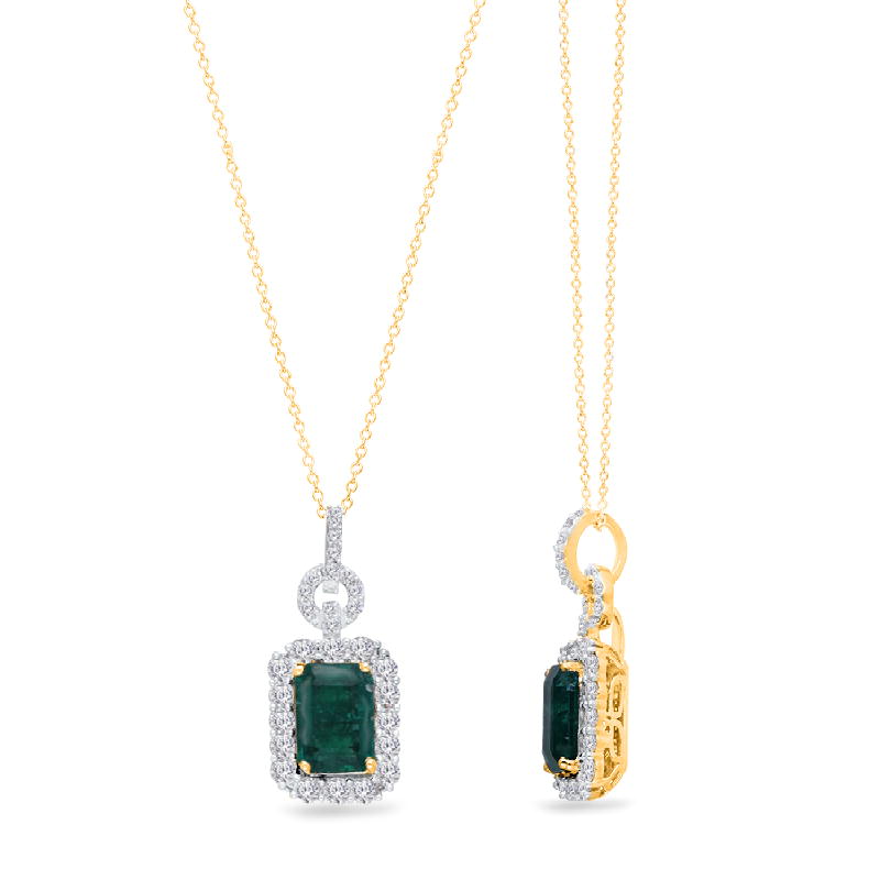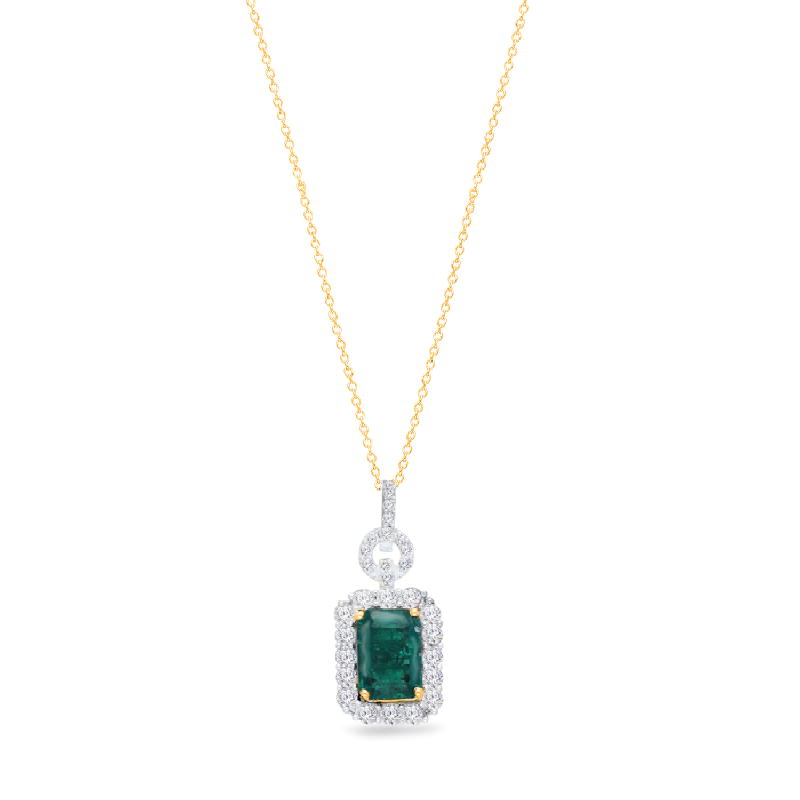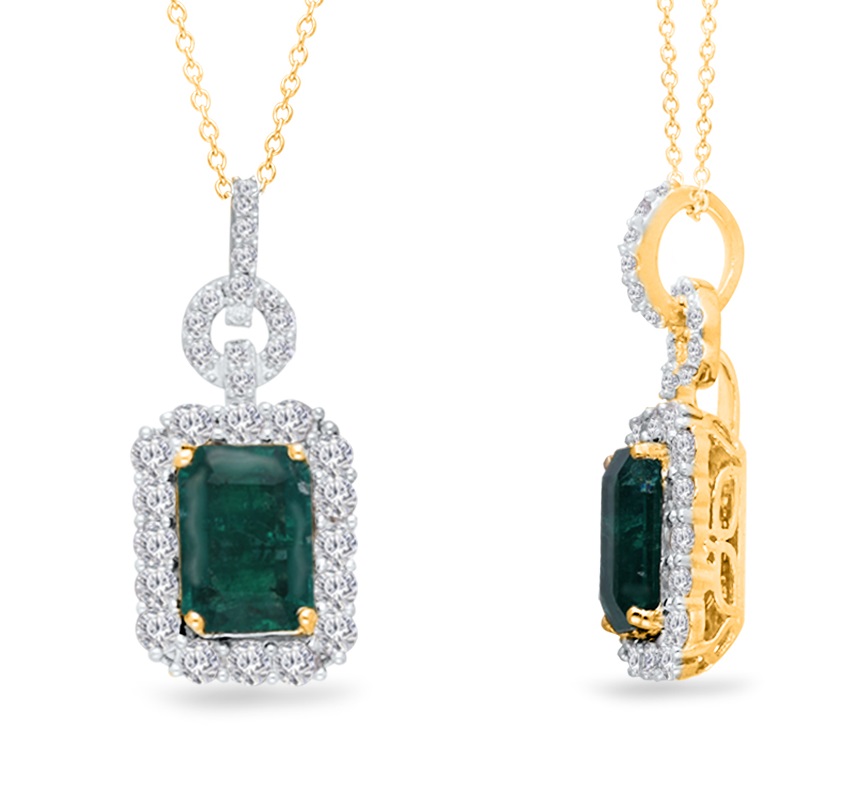 14K YELLOW GOLD ZAMBIAN EMERALD & WHITE