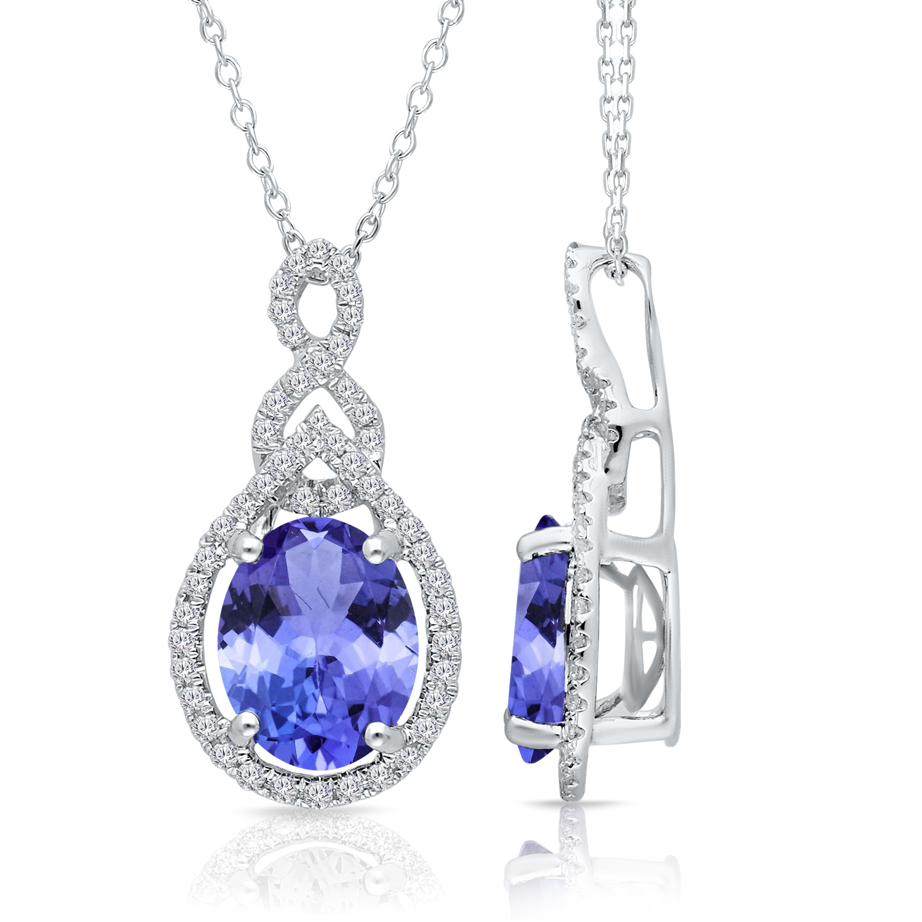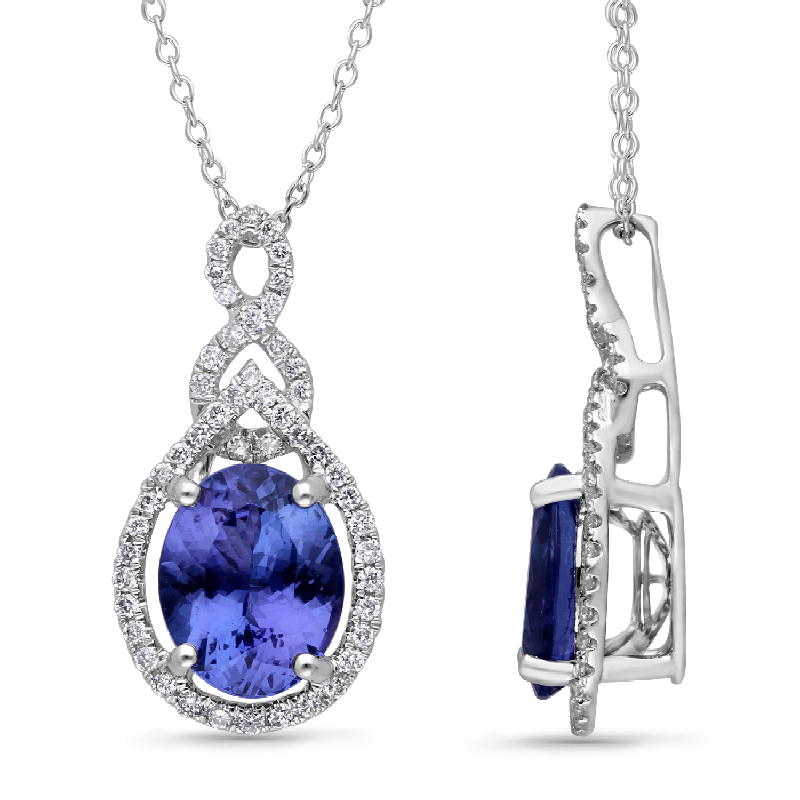 14K OVAL TANZINATE STONE & DIA PENDANT