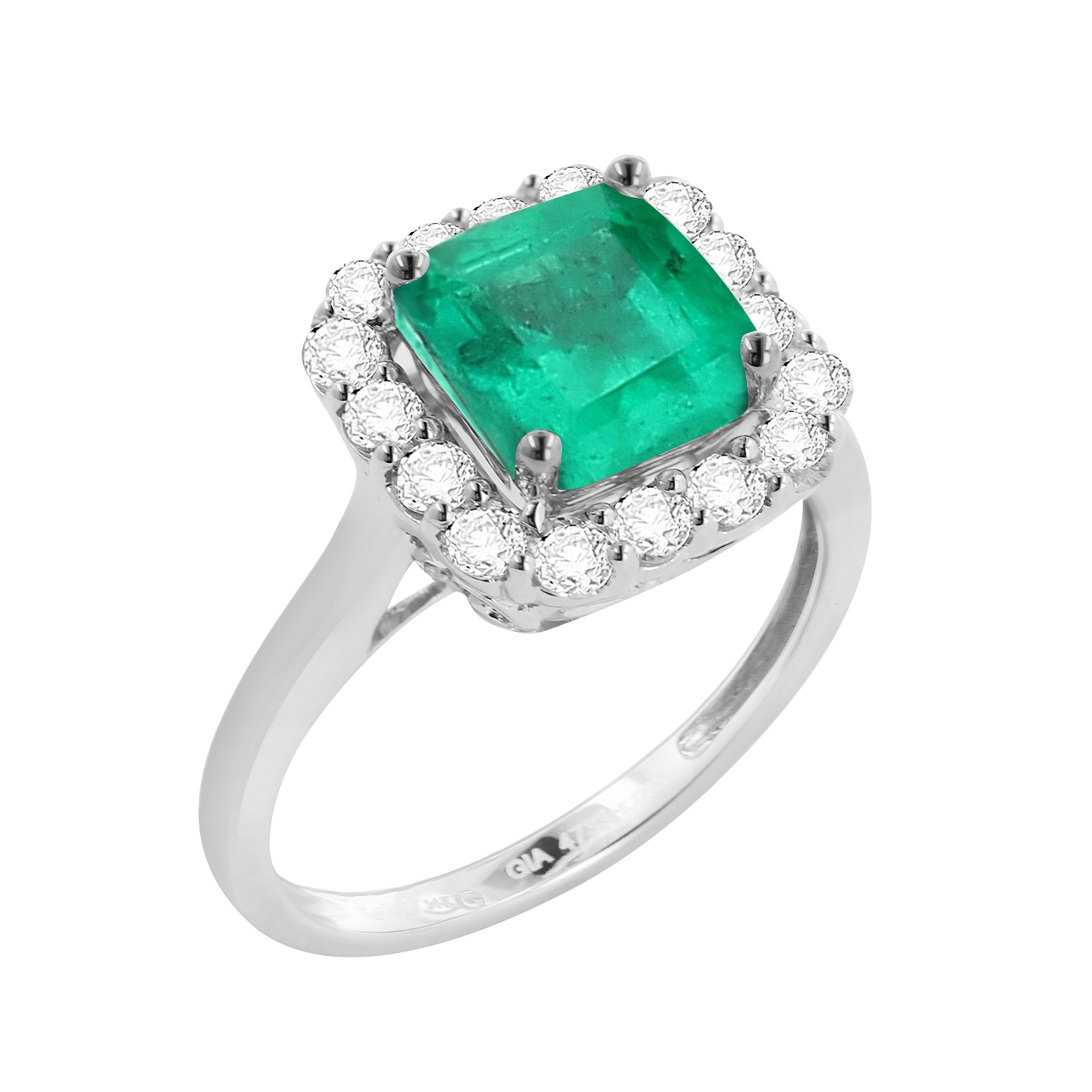 14K WHITE GOLD COLUMBAI EMERALD DIA RING