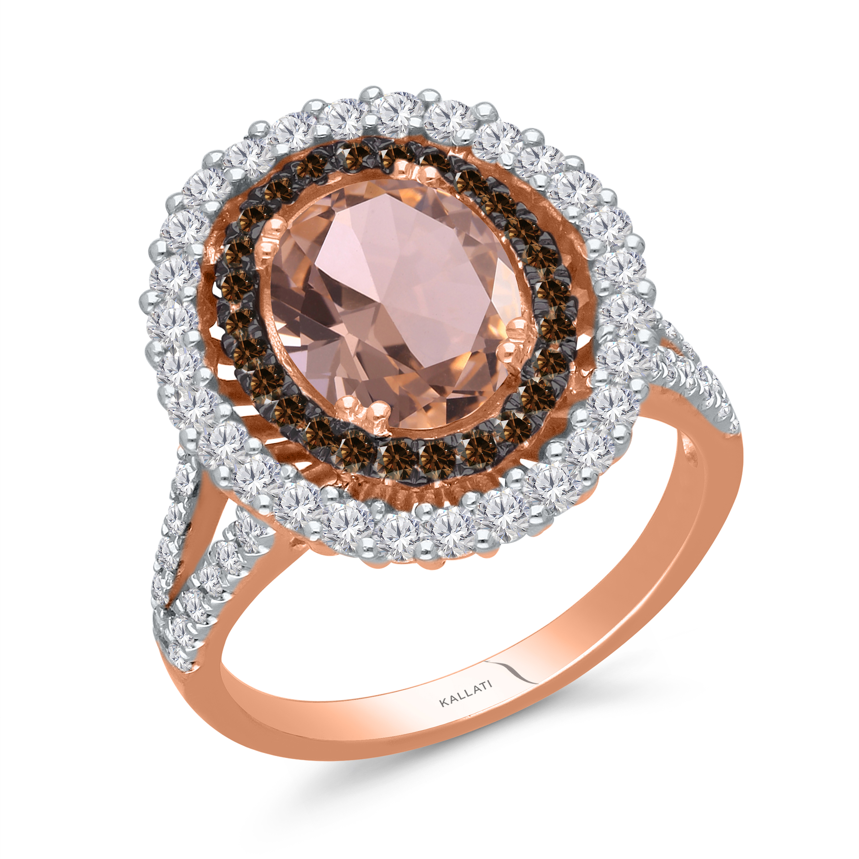 14K ROSE GOLD MORGANITE & COCO DIAMOND WITH WHITE DIAMOND RING