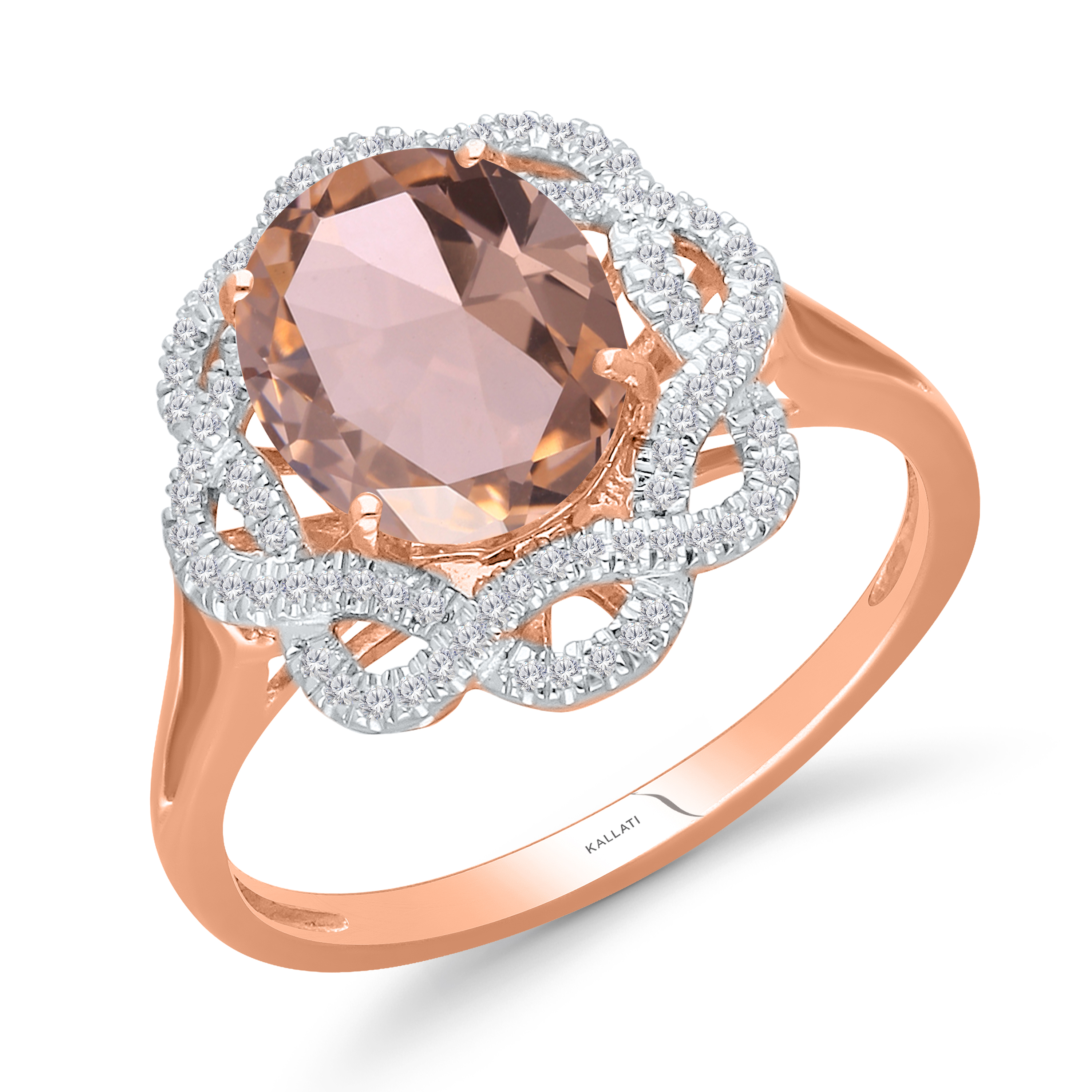14K ROSE GOLD MORGANITE & WHITE DIAMOND RING