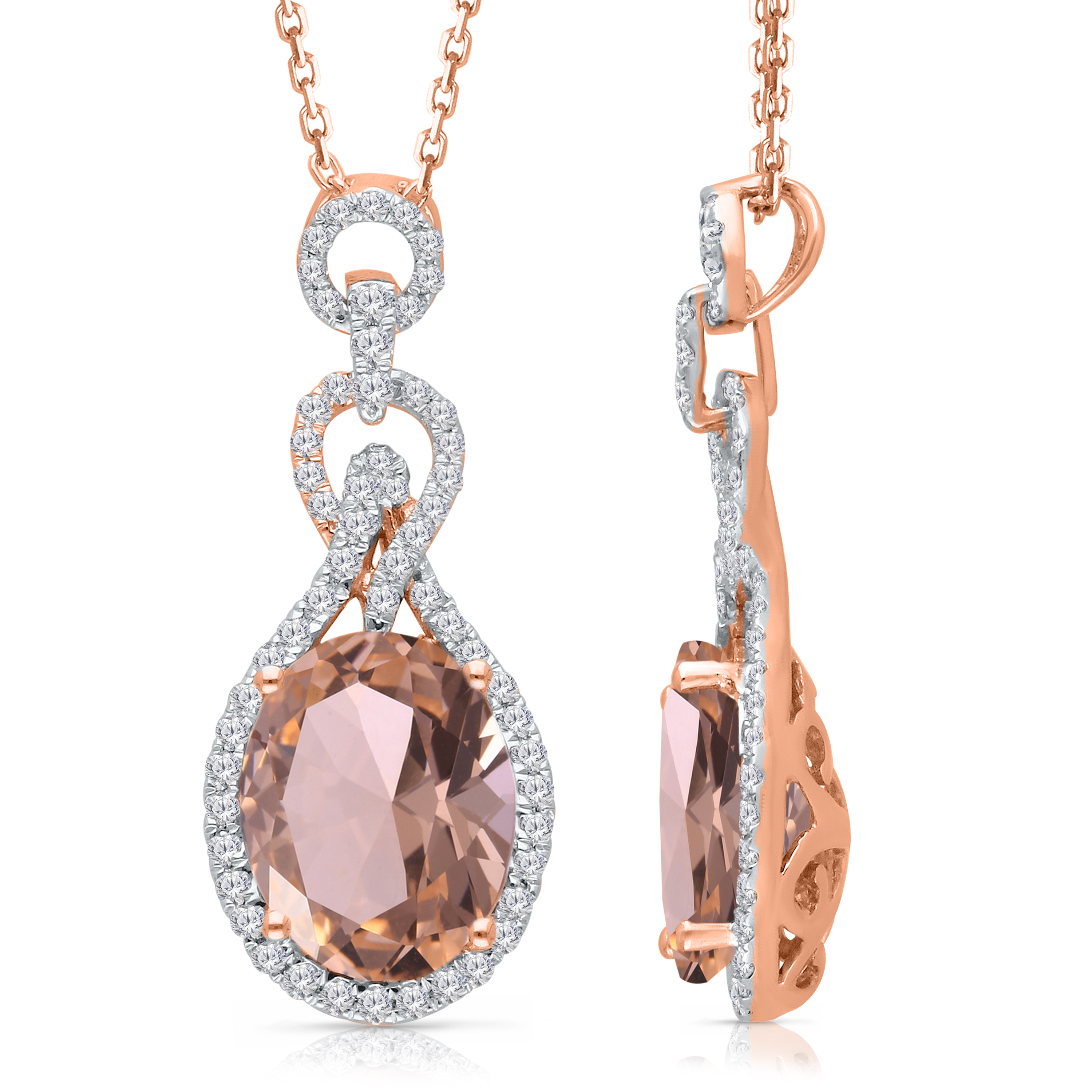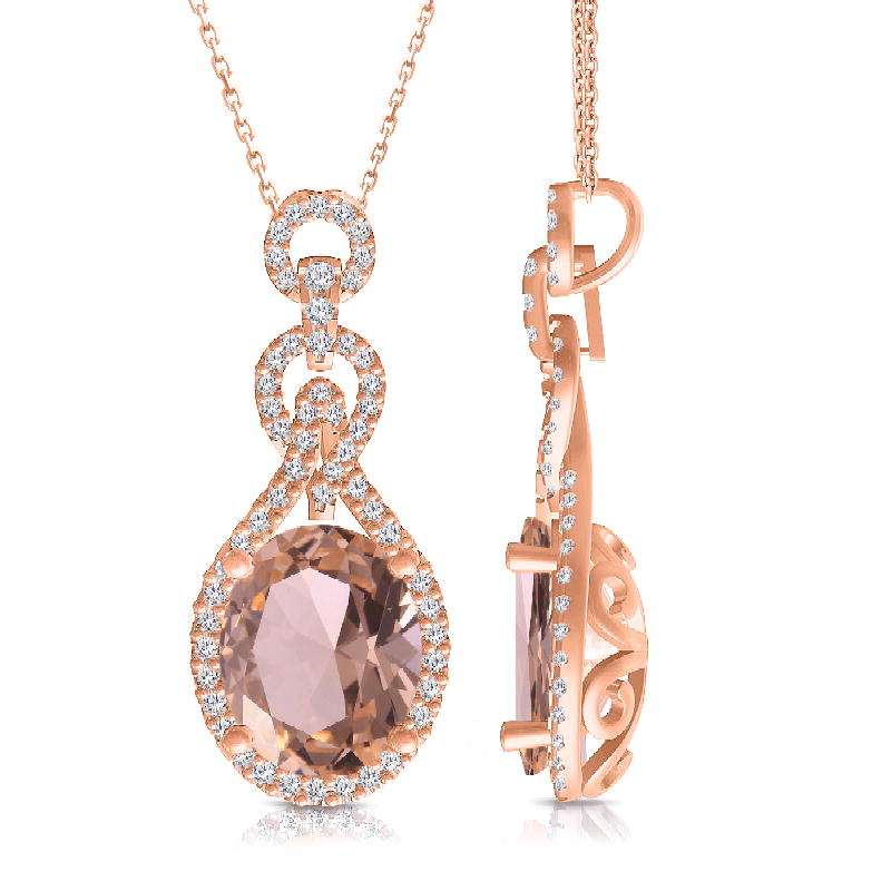14K ROSE GOLD MORGANITE & WHITE DIAMOND
