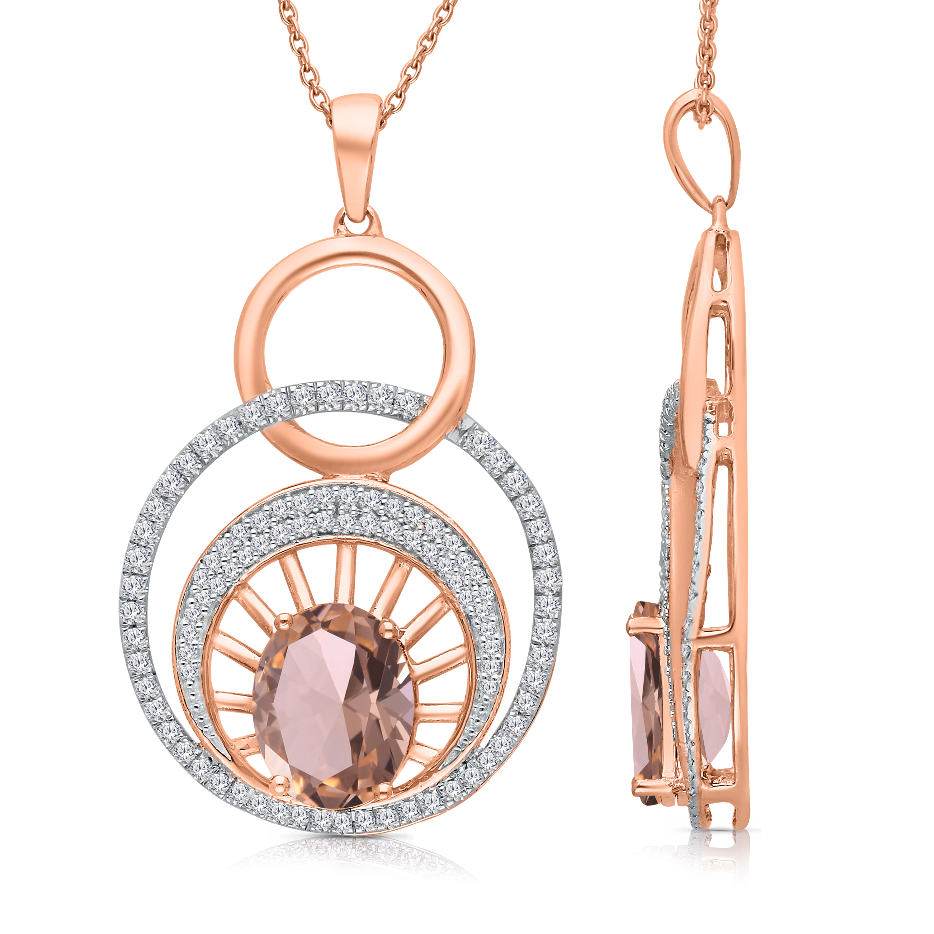 14 K ROSE GOLD MORGANITE & COCO WITH WHITE DIAMOND