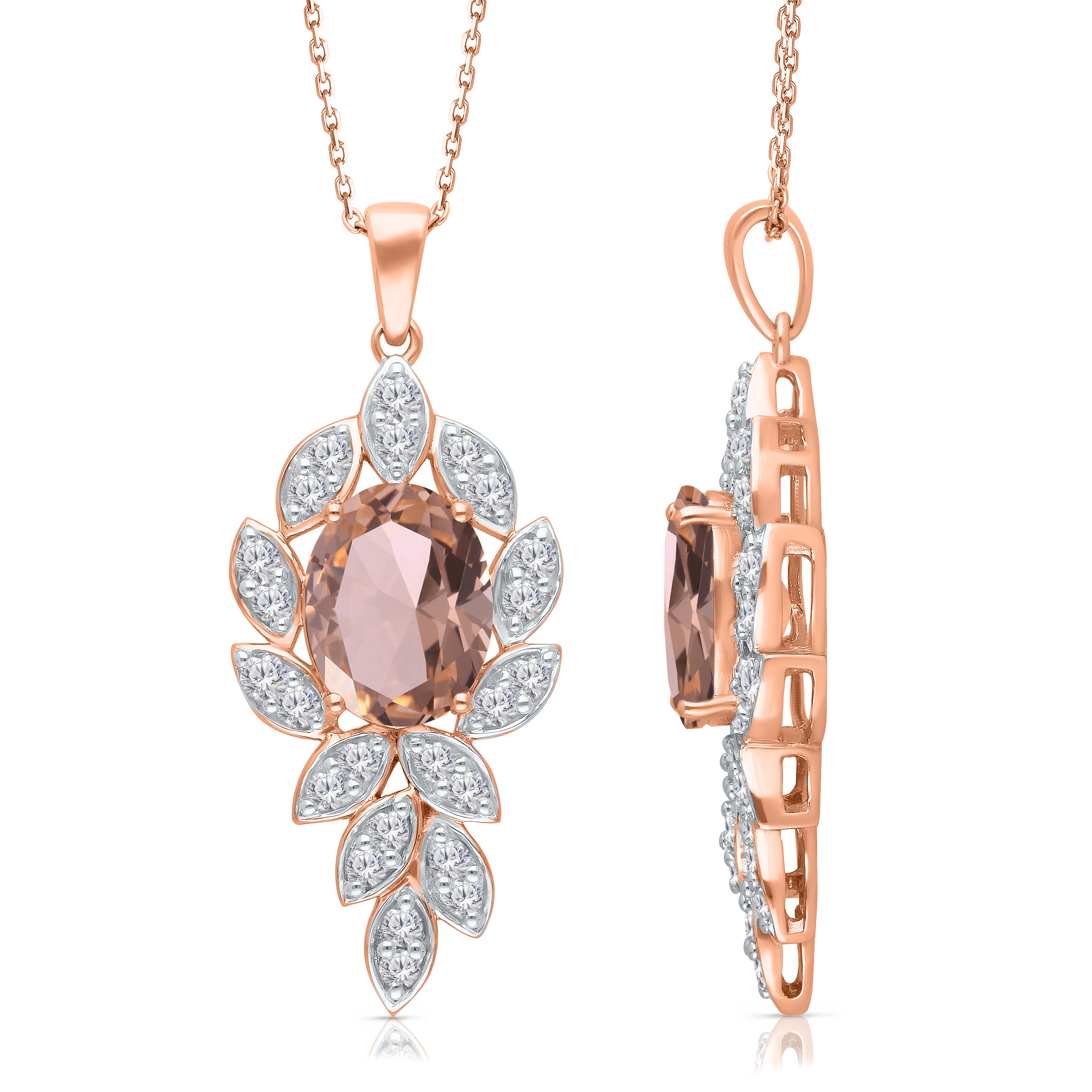 14 K ROSE GOLD MORGANITE & WHITE DIAMOND PENDANT