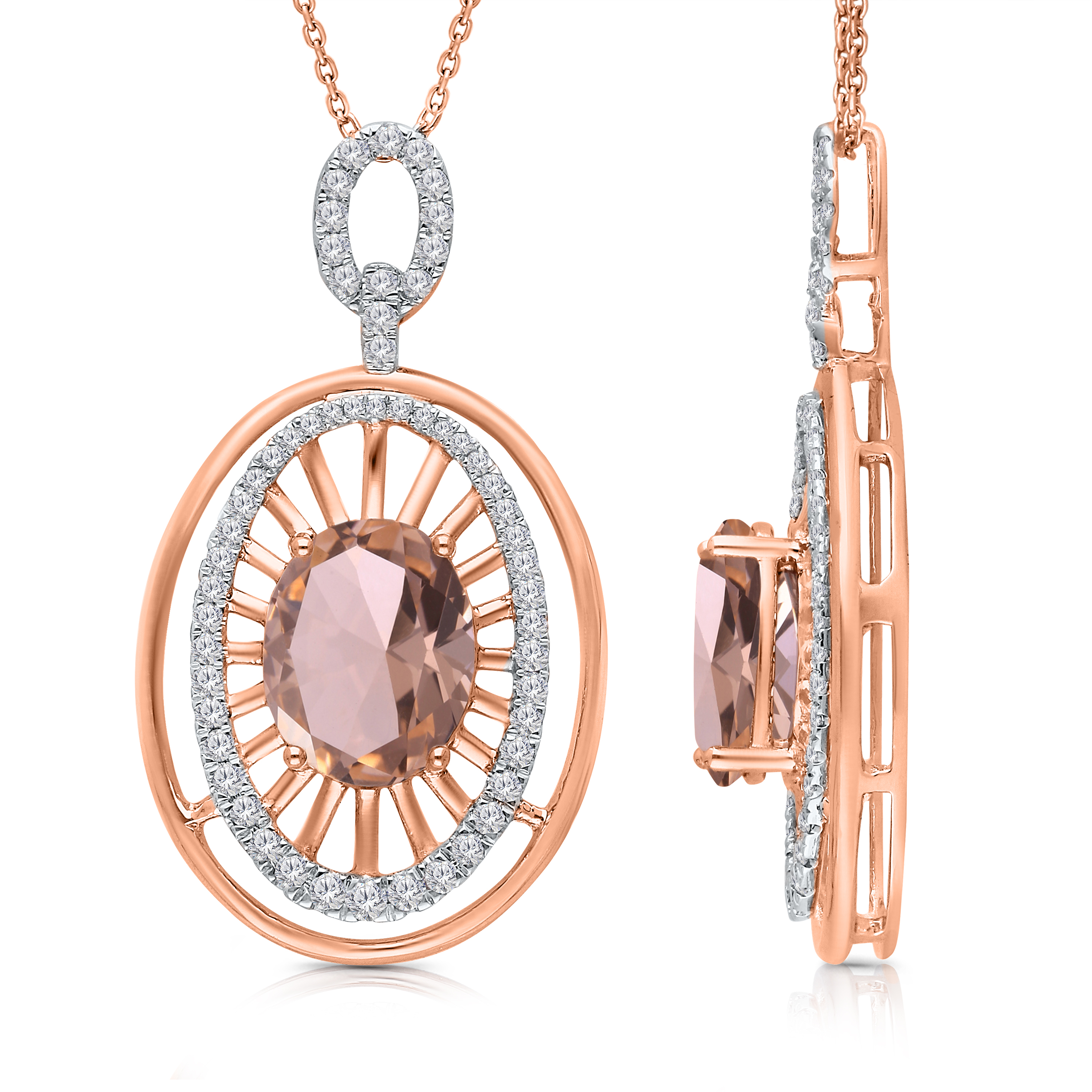 14 K ROSE GOLD MORGANITE WITH WHITE DIAMOND
