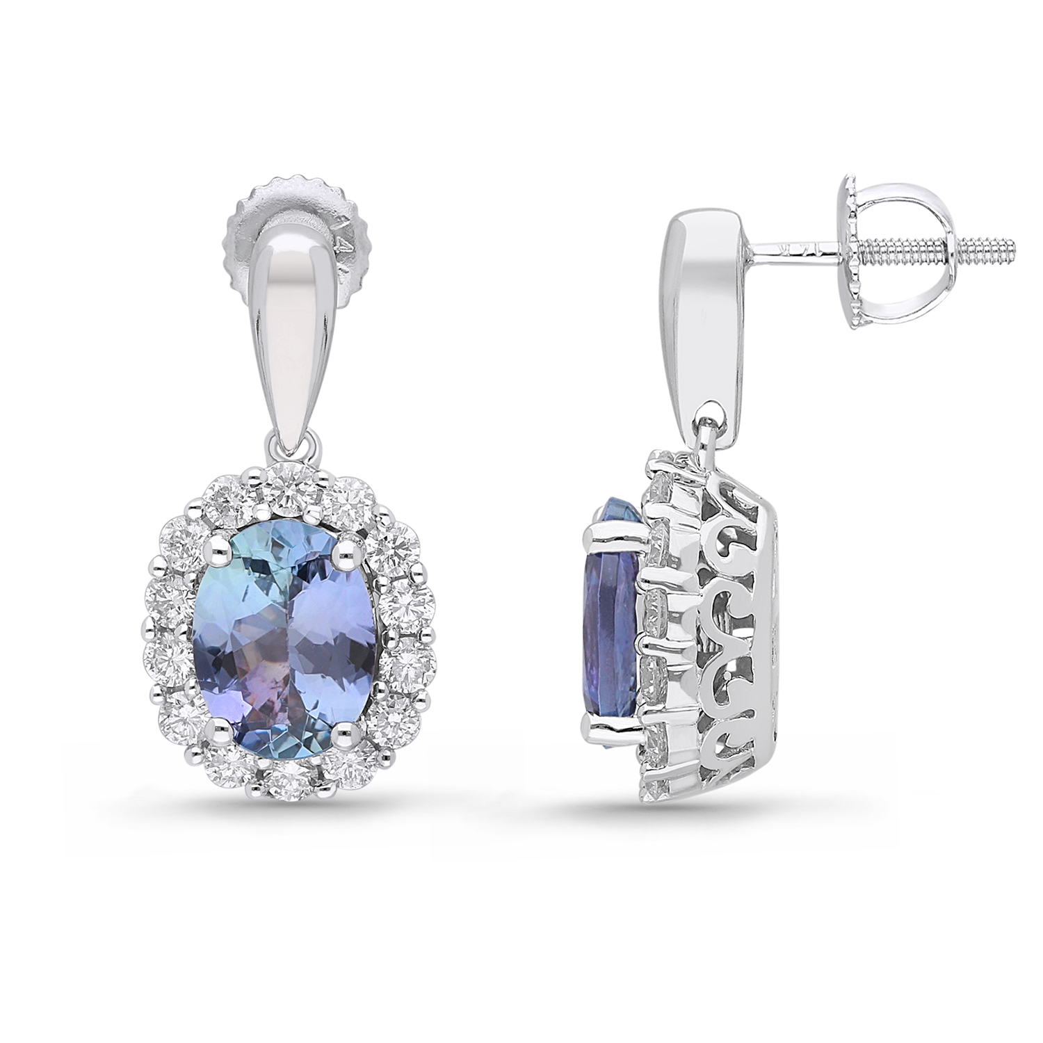 14K WHITE GOLD SAPPHIRE DIAMOND EARRING