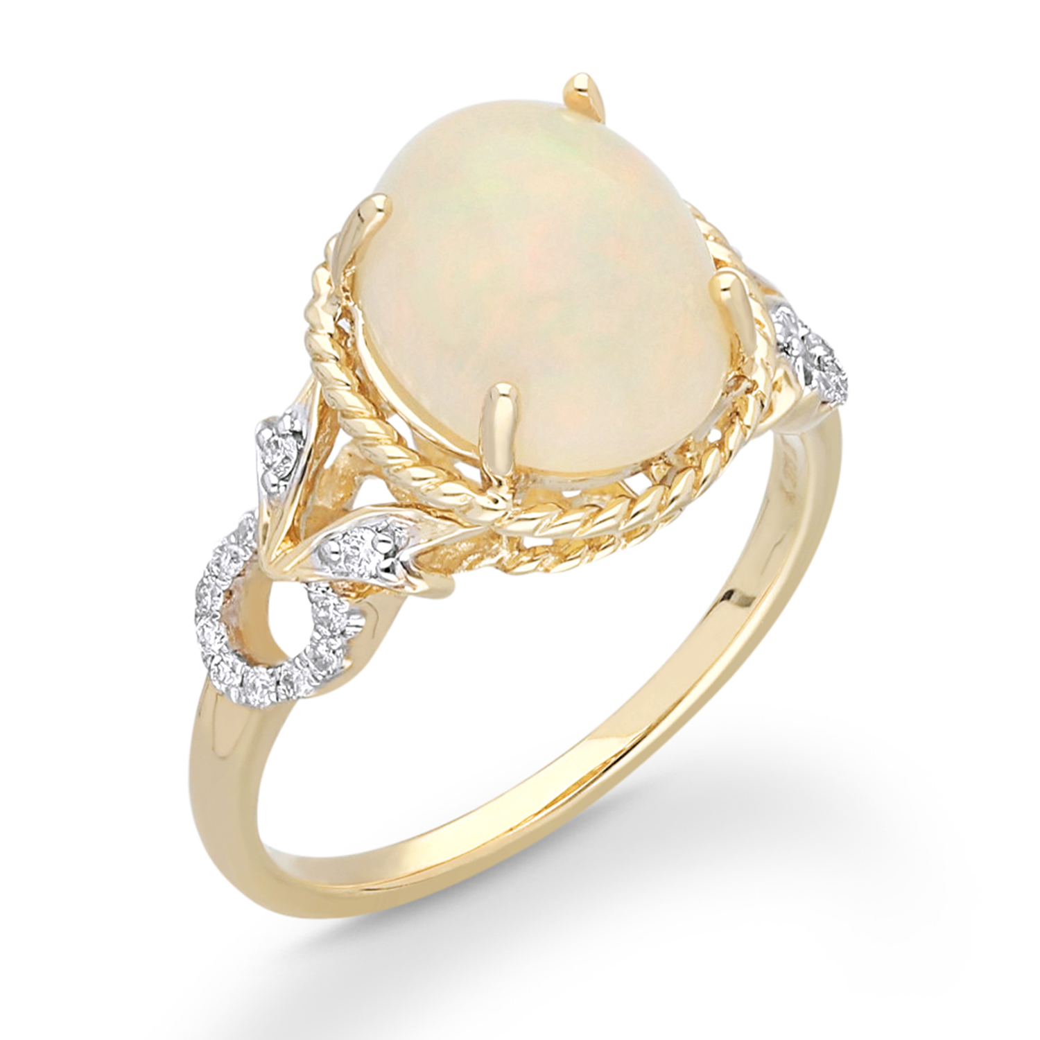 14K YELLOW GOLD WITH OPEL & DAIMOND RING