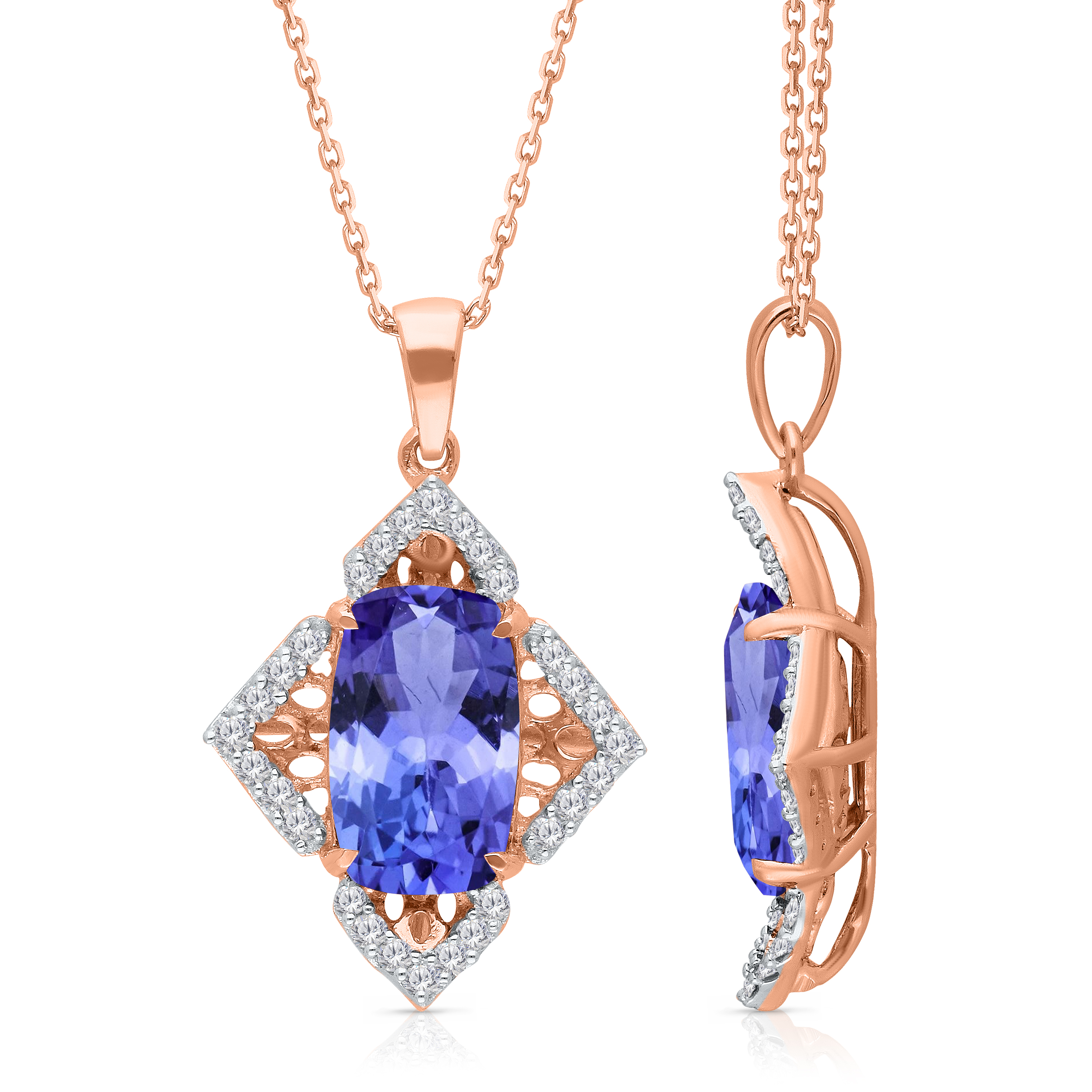 14K ROSE GOLD TANZANITE WITH WHITE DIAMOND PENDANT