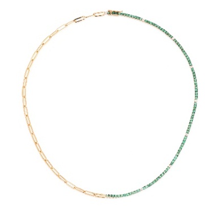 14K YELLOW GOLD EMERALD WITH WHITE DIAMOND FASHION NECKLACE