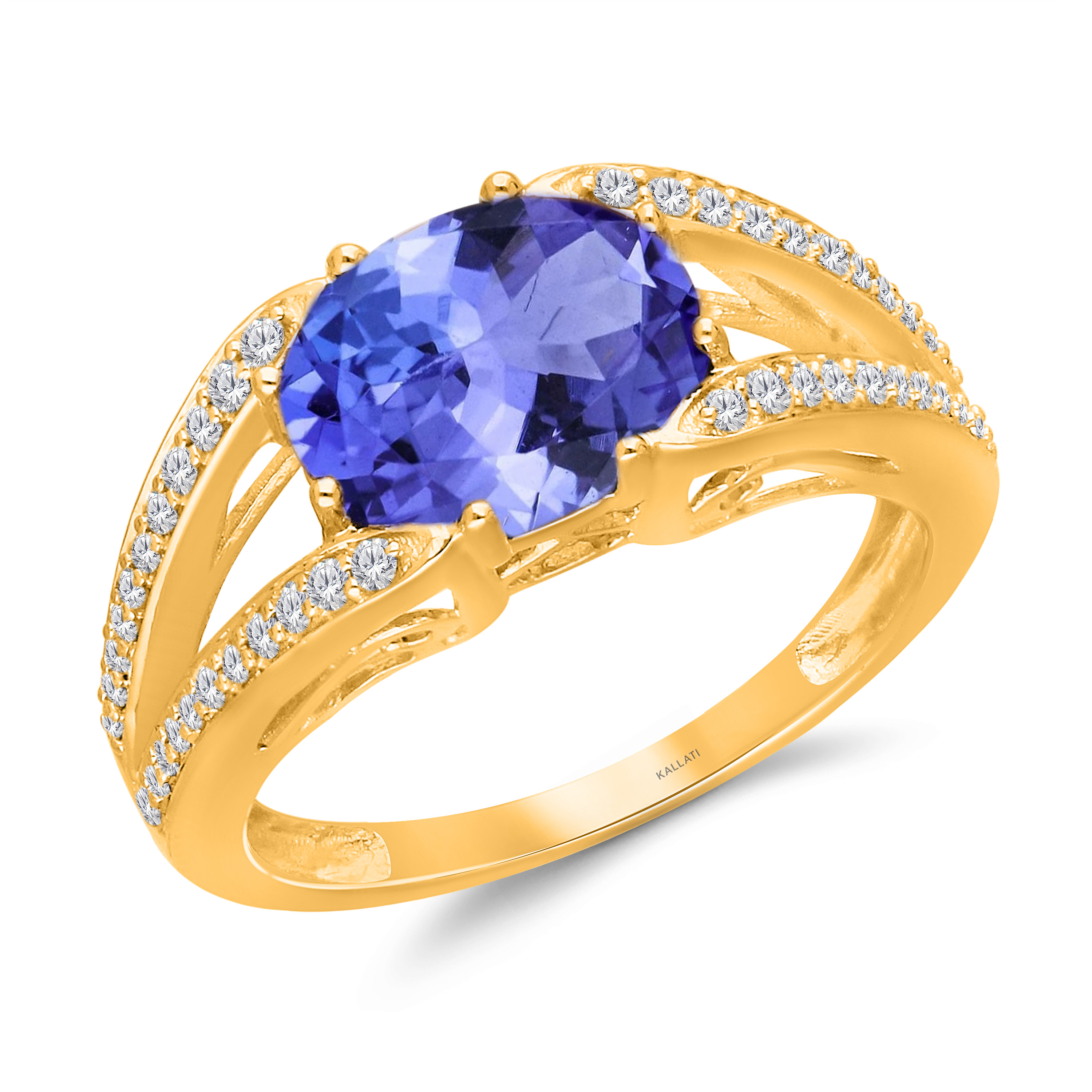 14K YELLOW GOLD TANZANITE WITH WHITE DIAMOND FASHION RING
