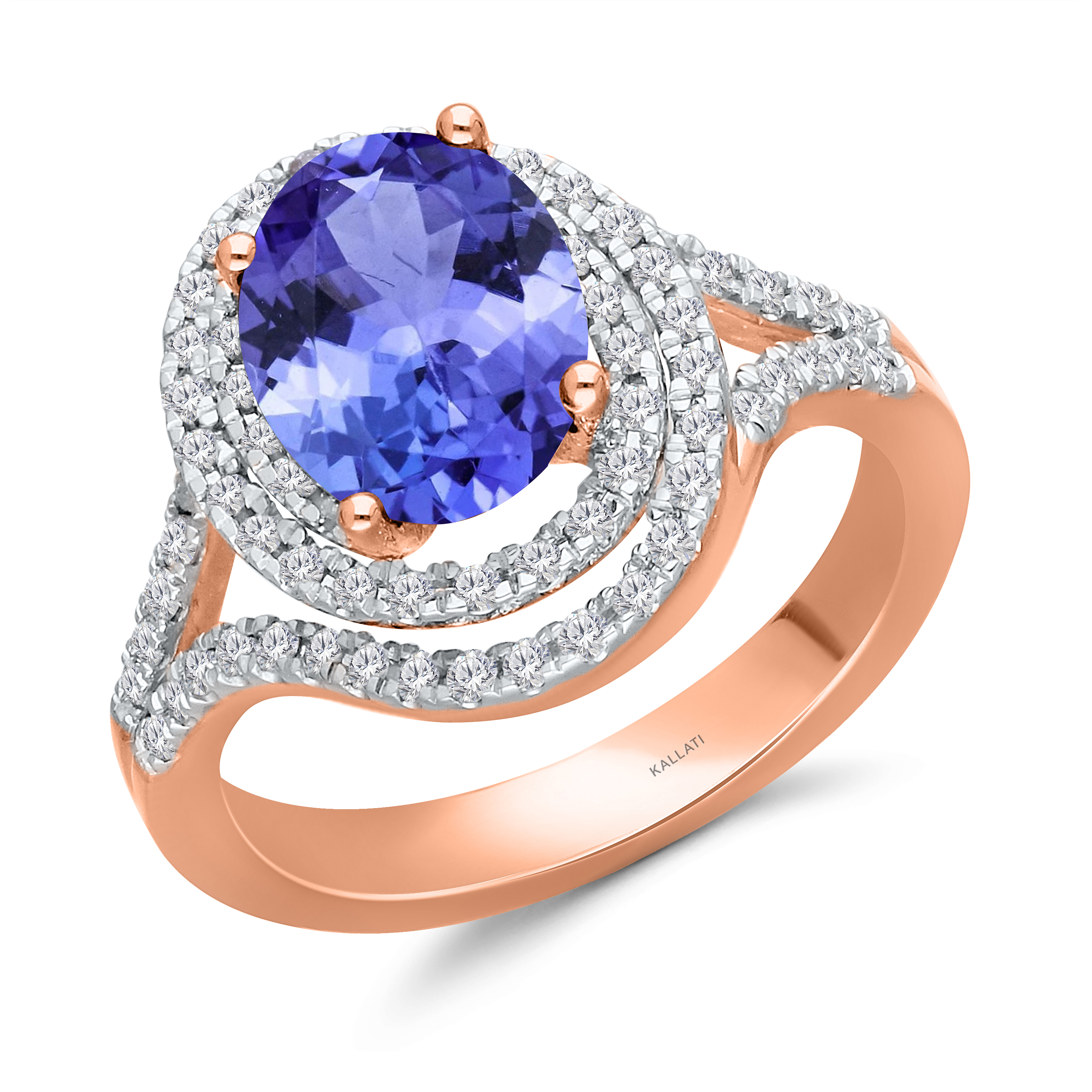 14K ROSE GOLD TANZANITE WITH WHITE DIAMOND FASHION RING