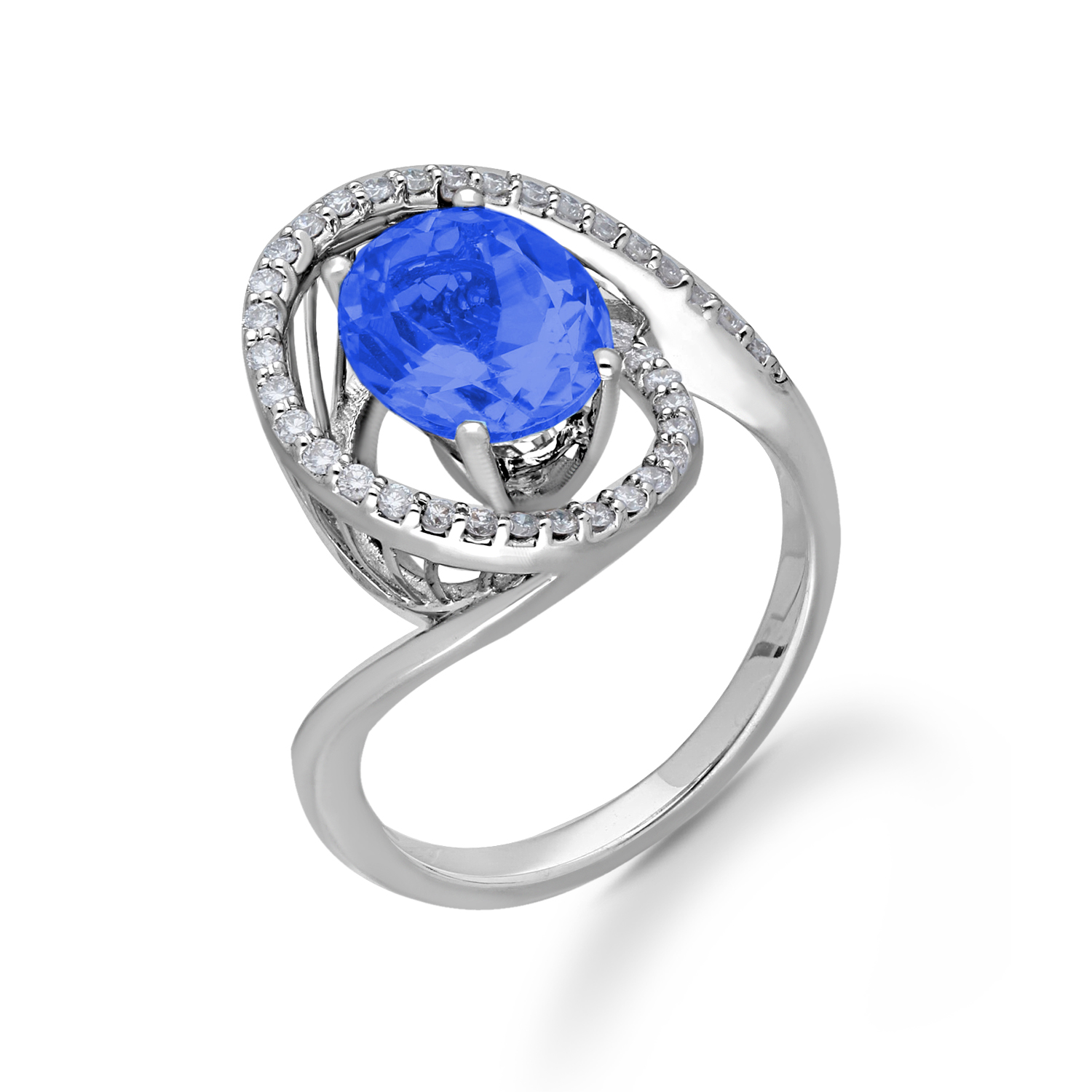 14K WHITE GOLD NON HEAT TANZANITE DIA RI
