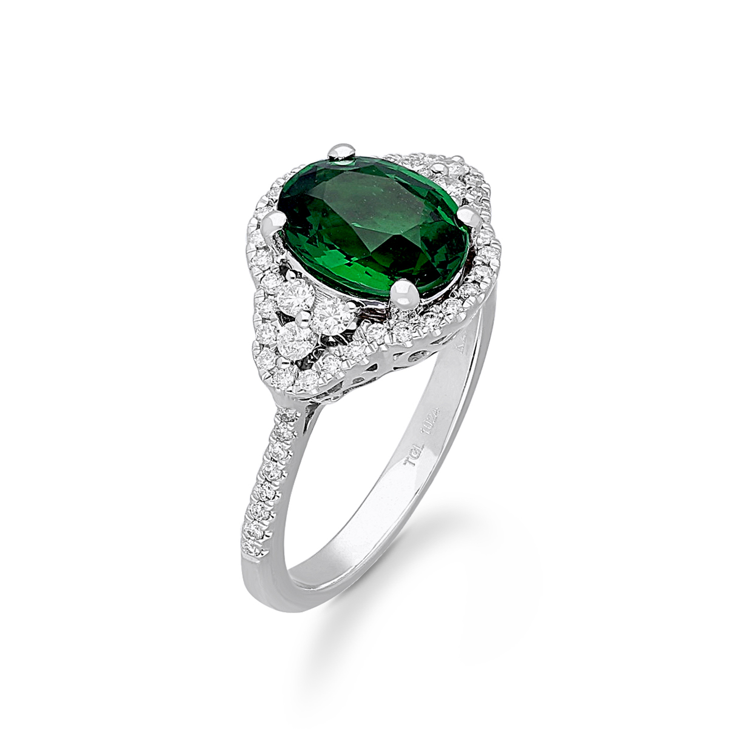 14K WHITE GOLD SI GIA TSAVORITE DIAMOND