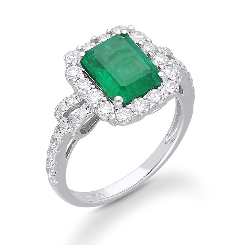 14K WHITE GOLD COLUMBIA EMERALD & WHITE